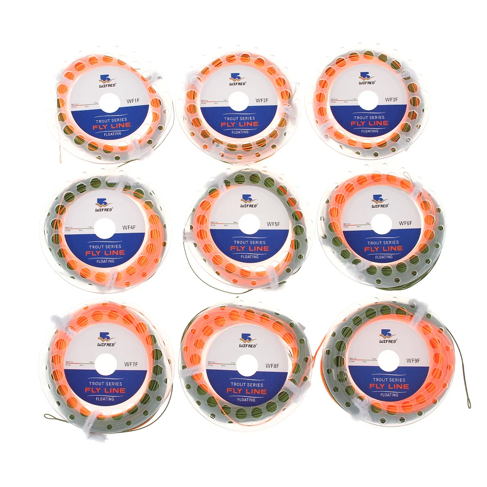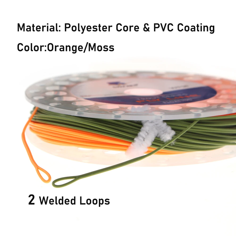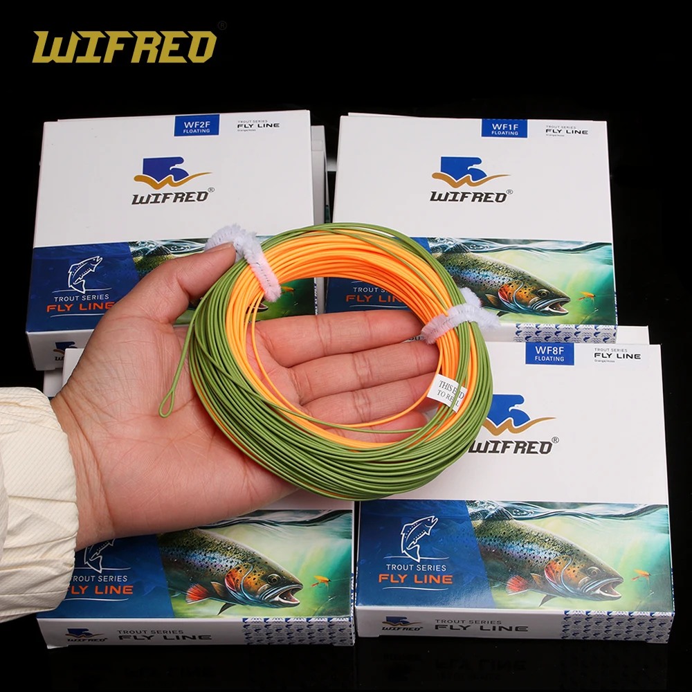 WF1F-WF9F Naranja/Moss 80FT ~ 100FT Línea de pesca con mosca Peso hacia adelante Flotante 2 bucles soldados Truta Pesca con mosca Ríos Lagos Corazones