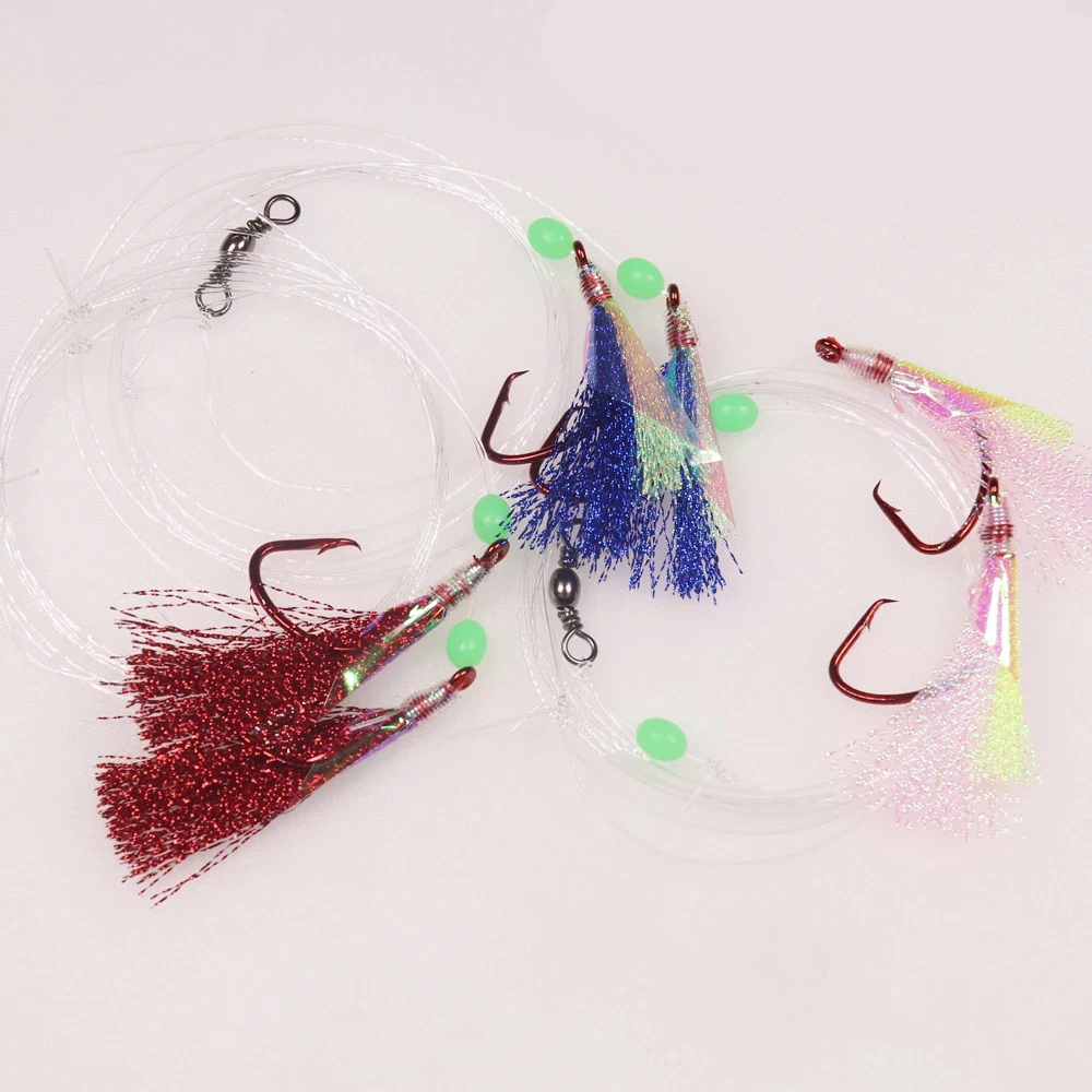Wfireo, 10 paquetes de aparejos Sabiki para pesca en agua de mar, aparejos de pesca en mar, aparejo intermitente, cada uno con 2/3 anzuelos de pesca, Kit de pesca, señuelo de pesca en mar