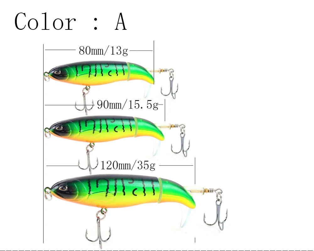 VOLIN-señuelo de Pesca Artificial Whopper Popper de 80cm, 13g, 90mm, 15,5g, 120mm, 35gHard, cola giratoria suave, aparejos de Pesca Geer, 1 unidad