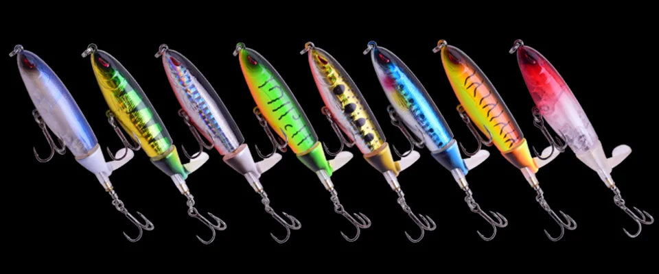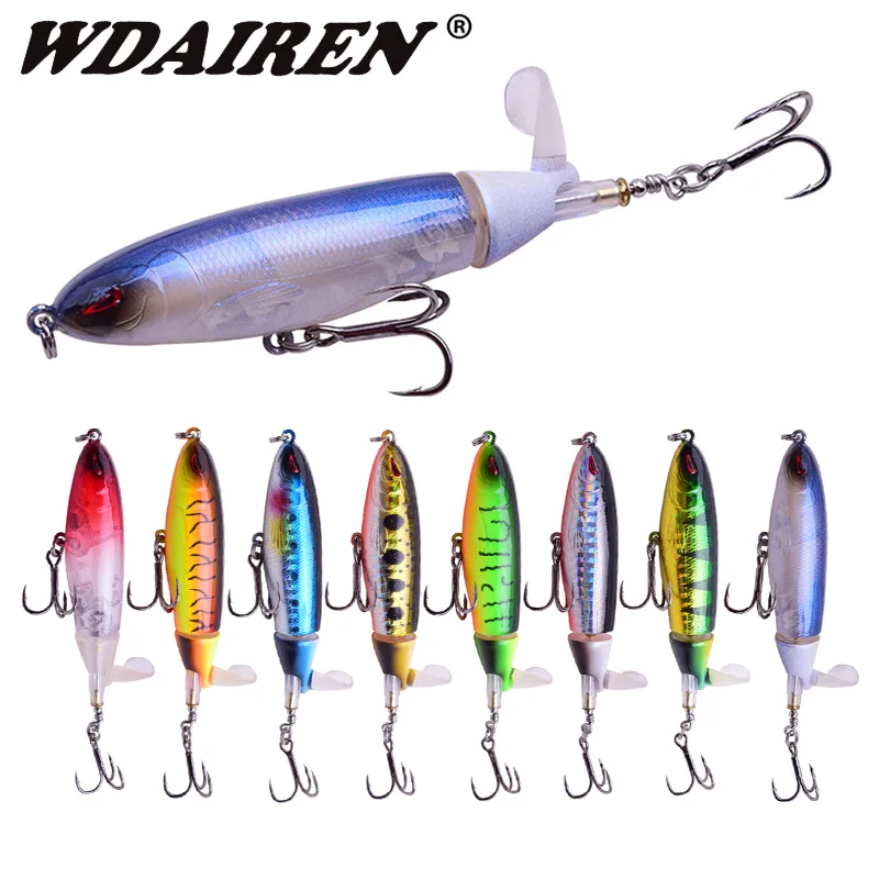 1 ud. Señuelos de Pesca Wobblers de cola blanda de superficie giratoria de 9cm 13g ojos artificiales 3D cebo duro Pesca aparejos de Pesca