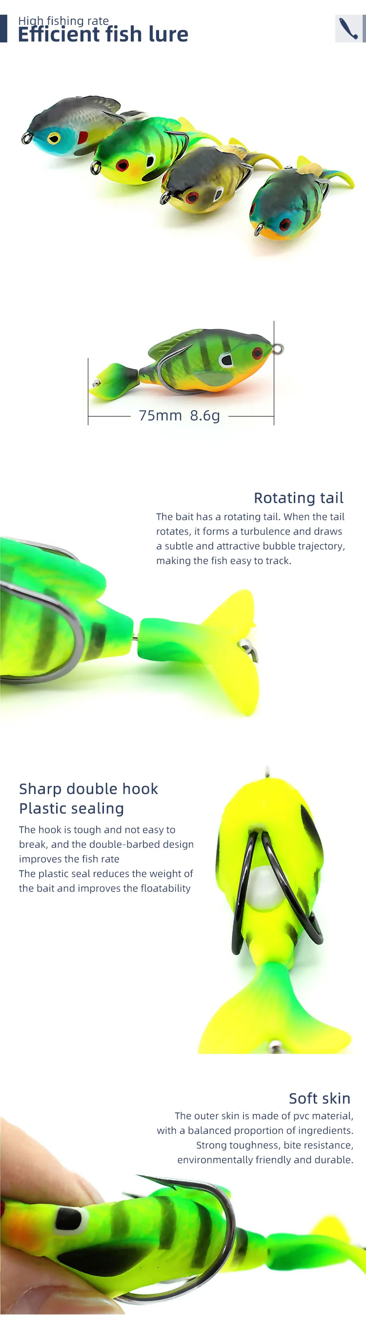 Whopper-señuelo de pesca Plopper, 75mm, 8,6g, cebo Artificial para lubina