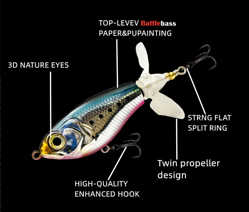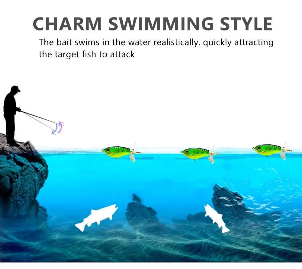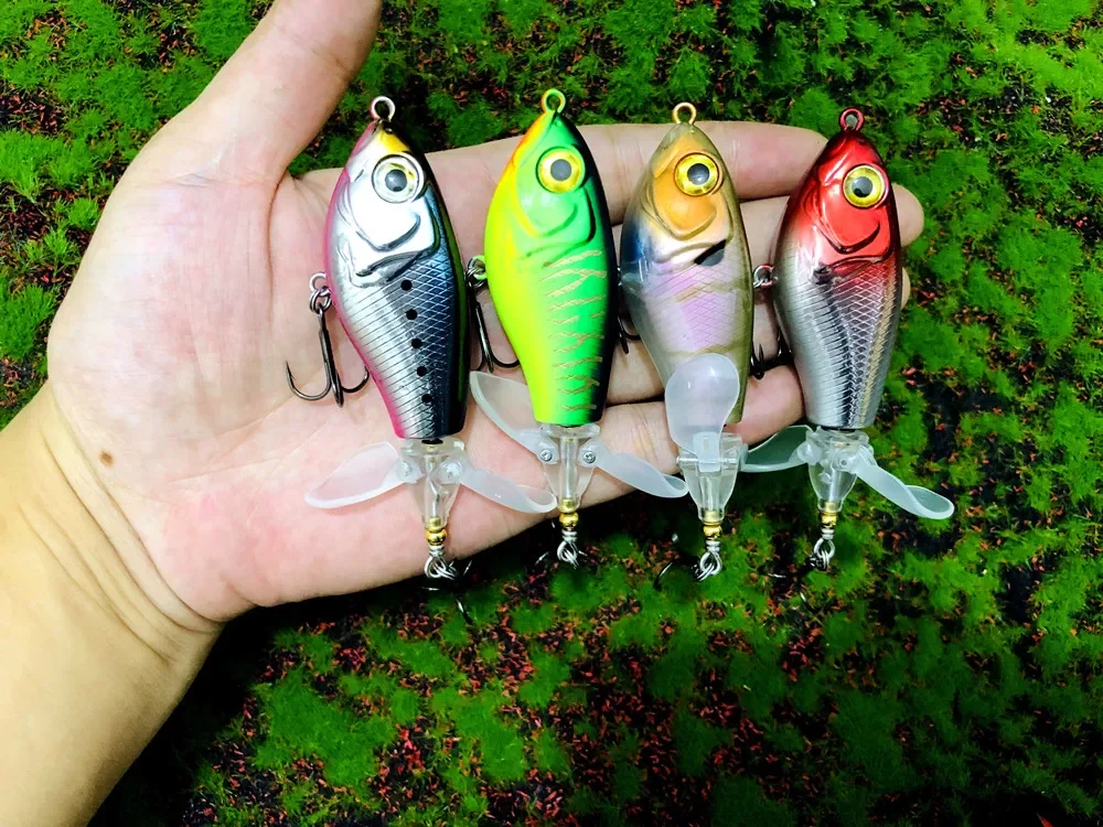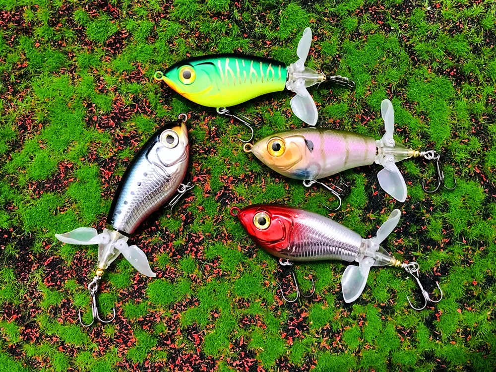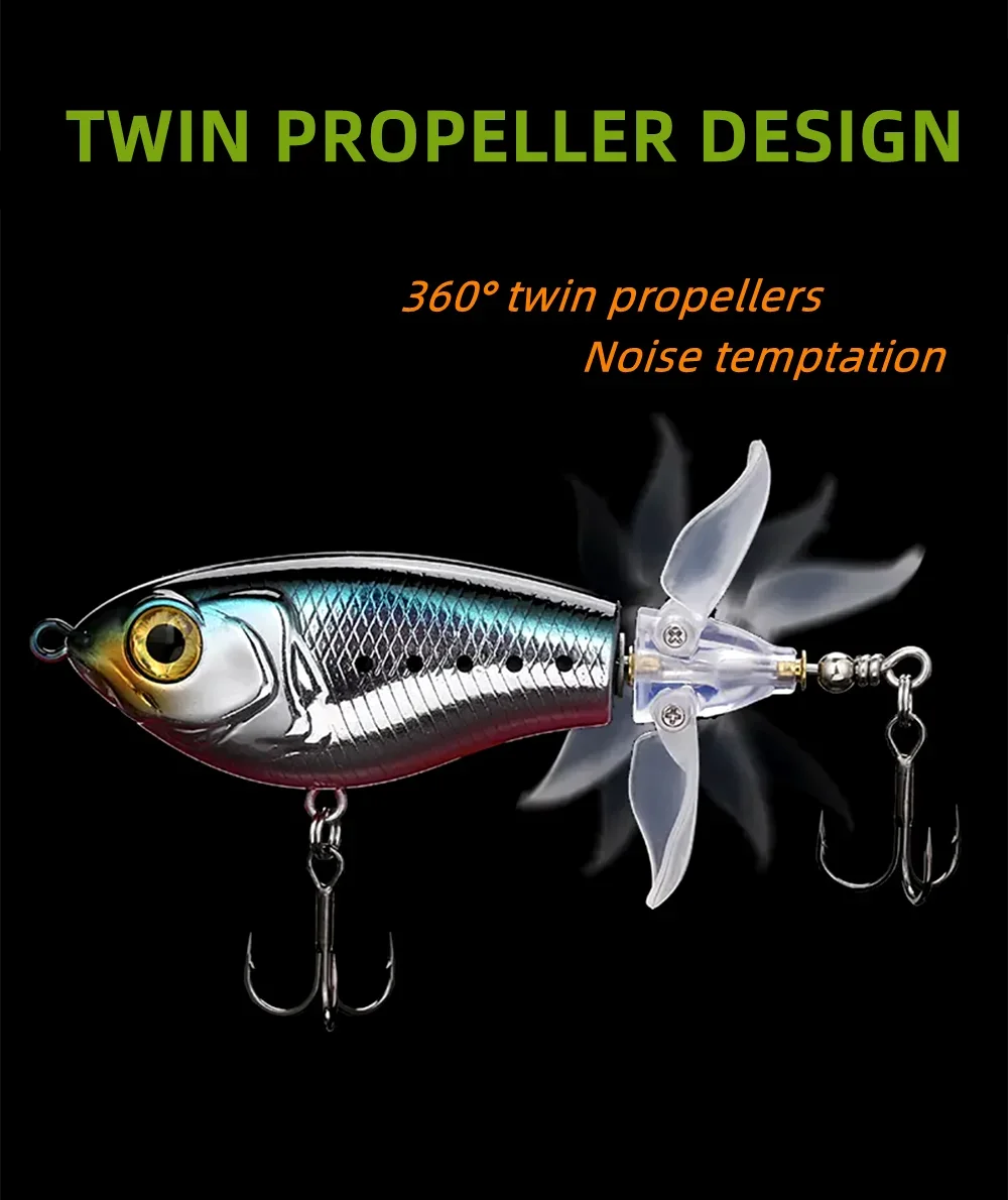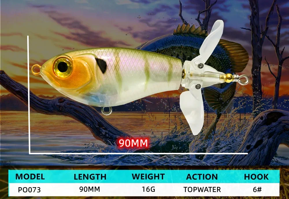 Whopper-señuelo de pesca Popper para carpa, cebo duro flotante de doble hélice, cola giratoria suave, 90mm, 16g