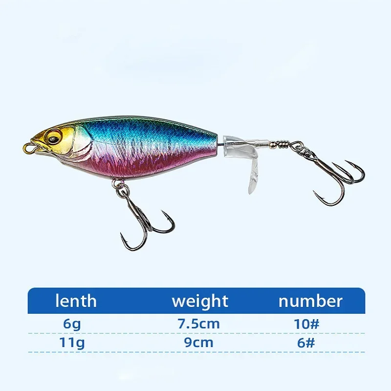Whopper-señuelo Popper de pesca piezas, cebo duro Artificial de 90mm y 11g, cola giratoria suave, aparejos de pesca