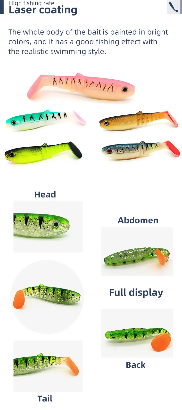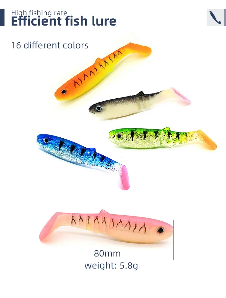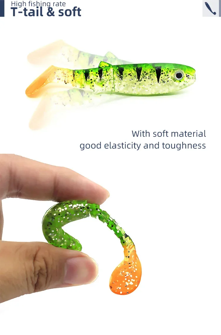 WHYY 5 unids/lote 8cm 6g Señuelos blandos de pesca 3D T-tail Wobblers pesca de gusanos pez de silicona cebo Artificial pesca para cabeza de anzuelo