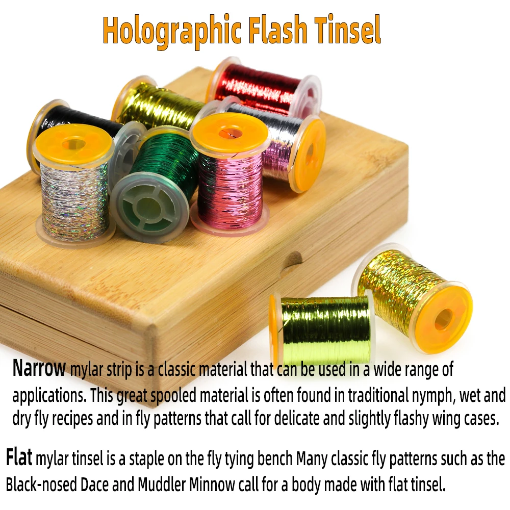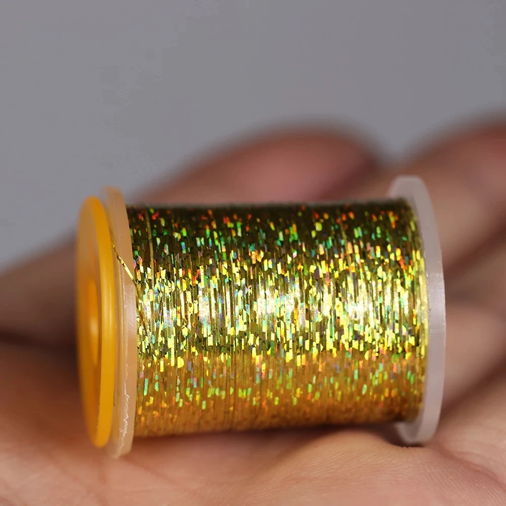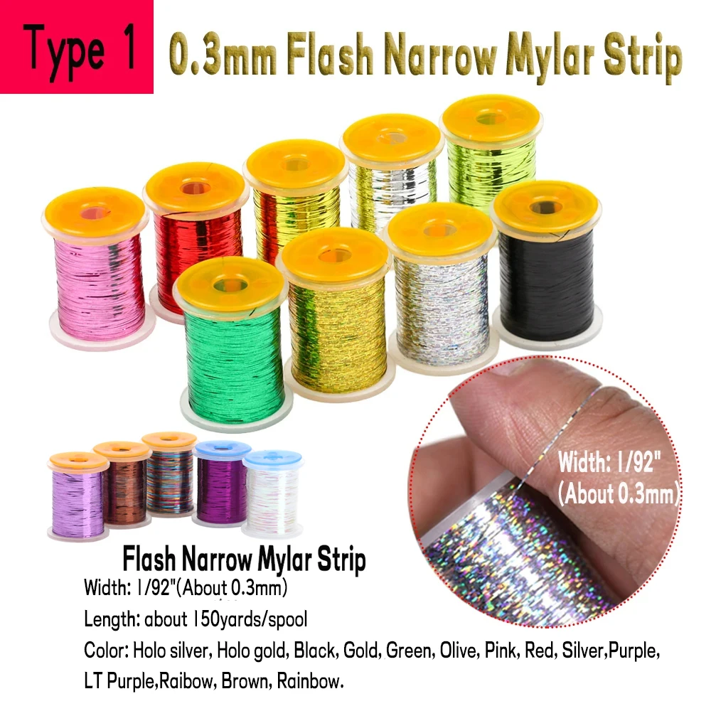 -Tira de Mylar estrecha de 150 yardas, oropel de Flash holográfico, cuerpos de Ninfa, materiales para atar moscas en seco y húmedo