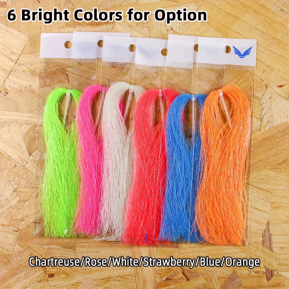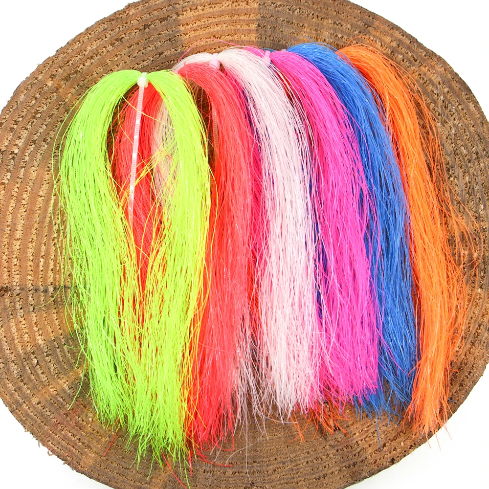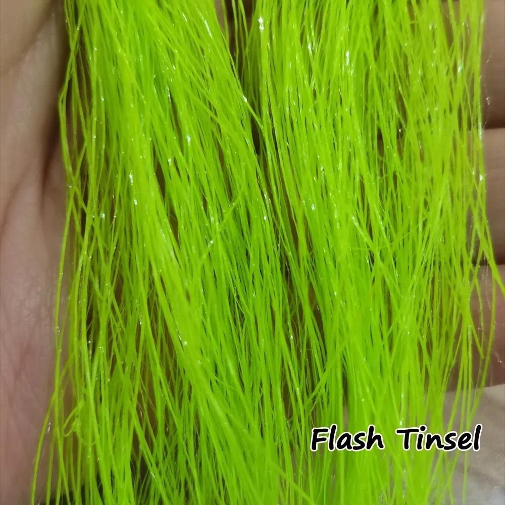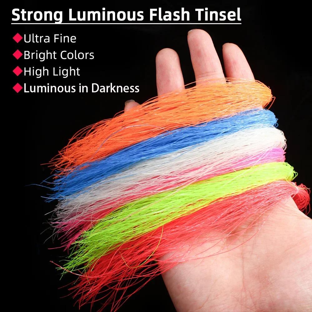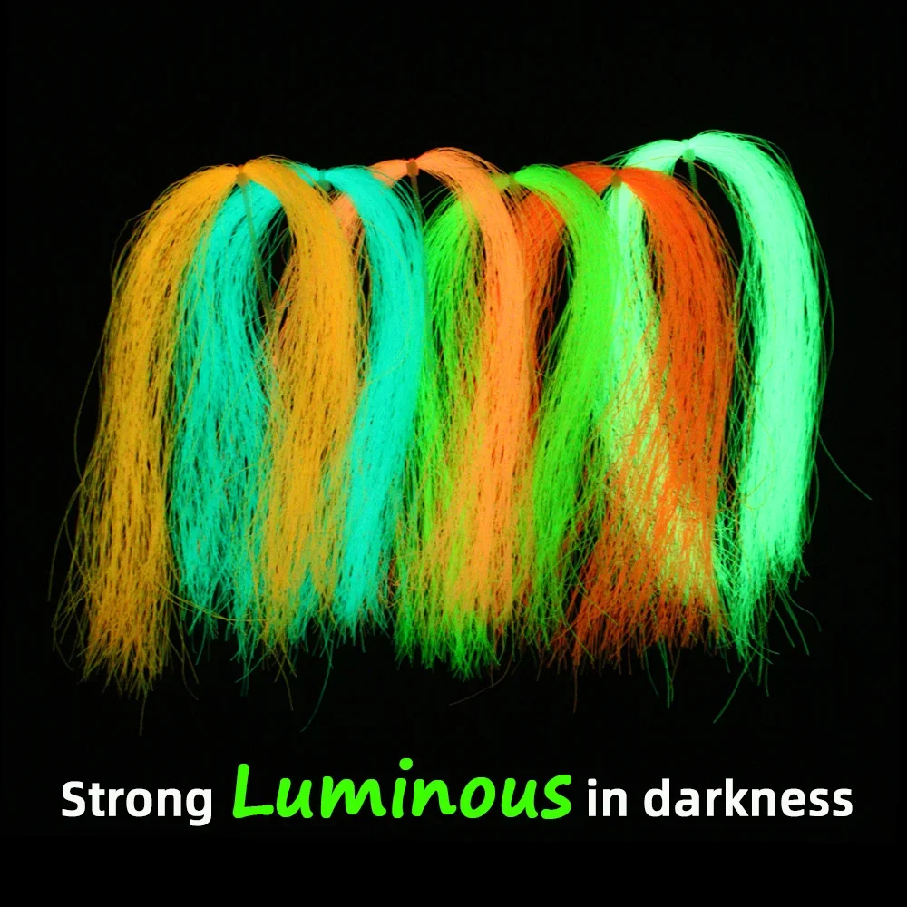El oropel luminoso es una gran adición a sus anzuelos auxiliares, señuelos jig, moscas de streamer, aparejos sabiki, especialmente para situaciones nocturnas y con poca luz, incrustadas en fibras flashabou luminosas, suaves, finas y que reflejan la luz que logran una apariencia realista.