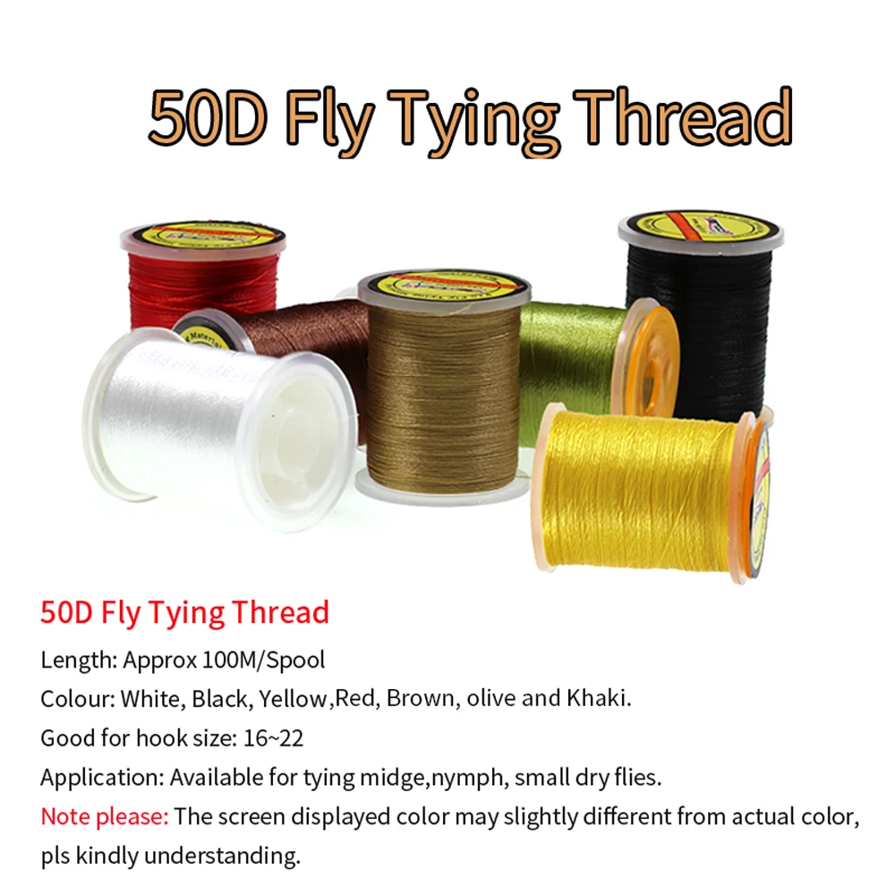 Wifreo 1 carrete 50D hilo para atar moscas para el tamaño 16-22 moscas secas pequeñas material para atar el cuerpo línea de atado negro blanco amarillo