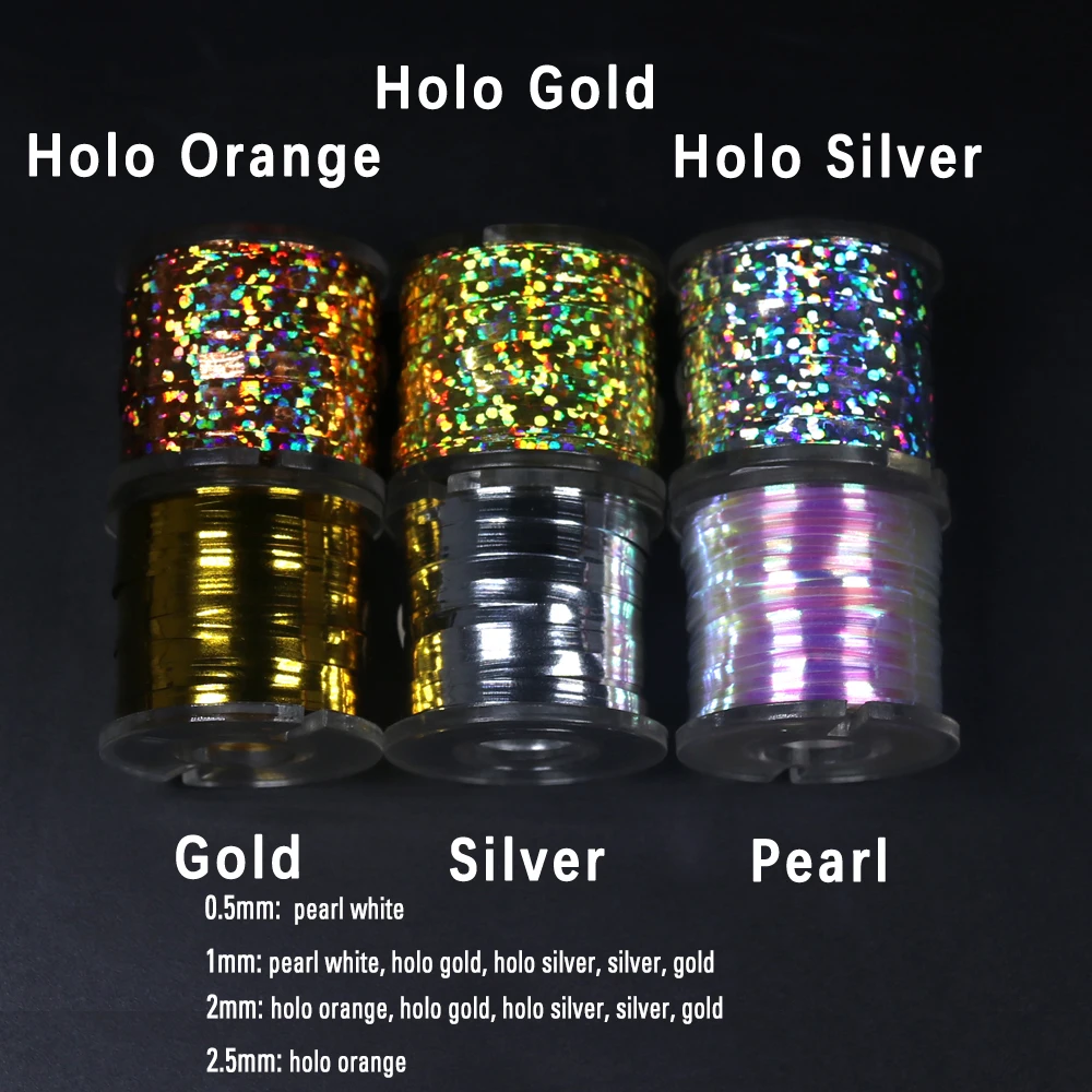 Wifreo 1 carrete Fly Tying Tinsel Flash Tape Pearl Holographic Orange Gold Silver Streamer Teaser Fly Tying Material