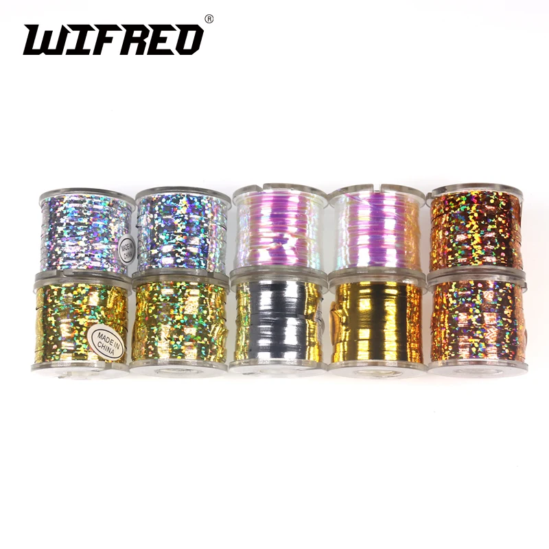 Wifreo 1 carrete Fly Tying Tinsel Flash Tape Pearl Holographic Orange Gold Silver Streamer Teaser Fly Tying Material