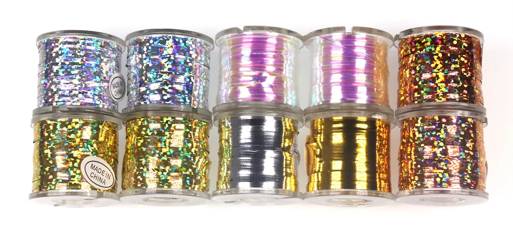 Wifreo 1Spool Fly Tying Tinsel Flash Tape Pearl Holographic Orange Gold Silver Streamer Teaser Fly Tying Material