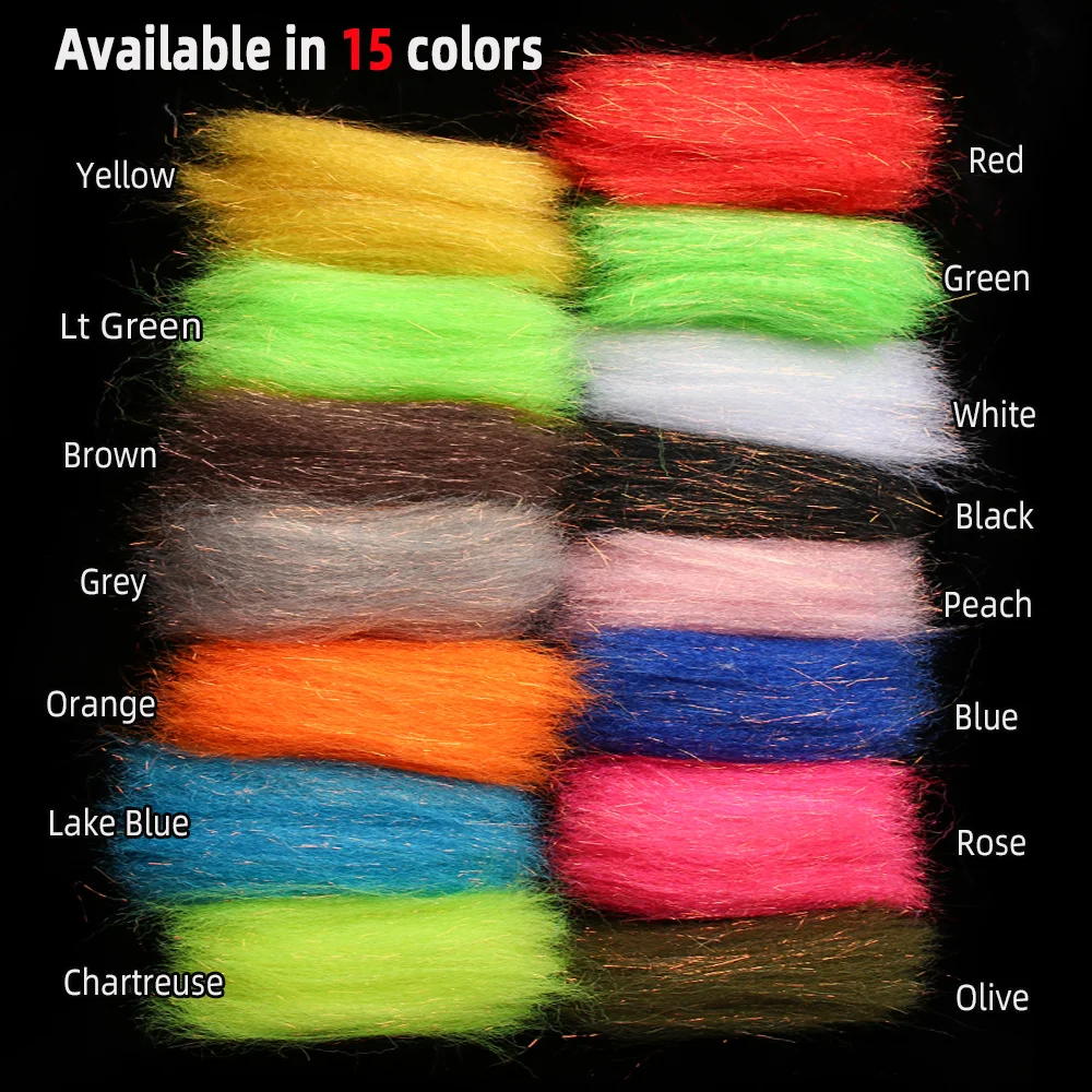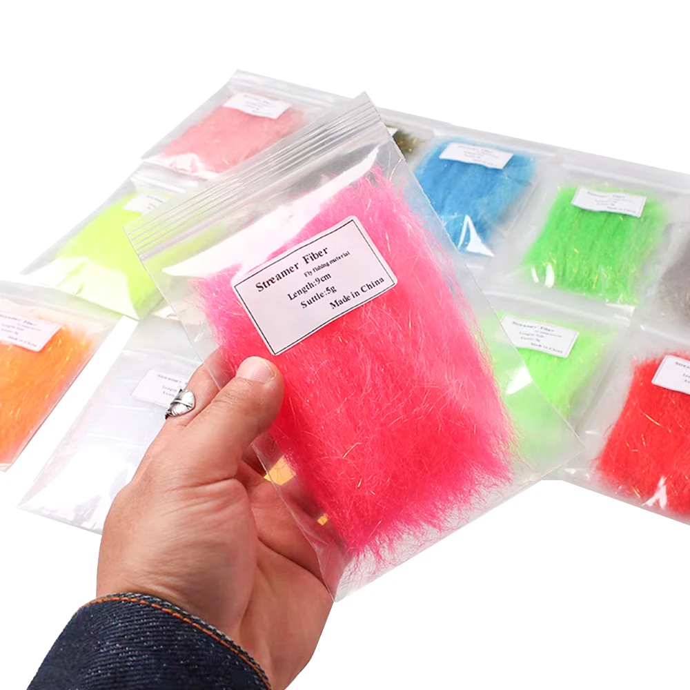 Wifreo 1 paquete de fibra Flash Streamer, fibra sintética engarzada Slinky, Material para atar moscas para Minnow Streamer, plantilla, moscas, señuelos de trucha