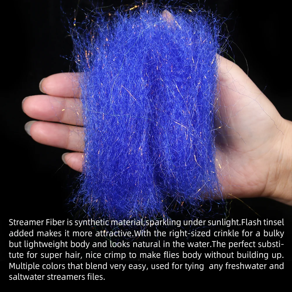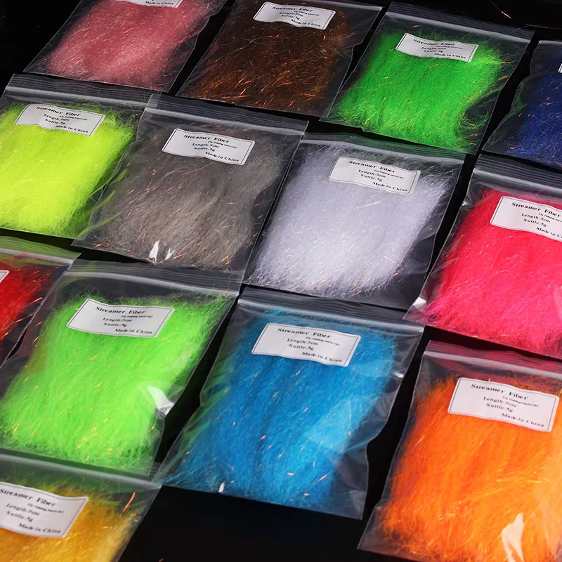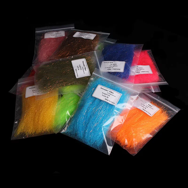 Streamer Fiber es material sintético que brilla bajo la luz solar.El oropel flash agregado lo hace más atractivo.Con arrugas del tamaño adecuado para un cuerpo voluminoso pero liviano y luce natural en el agua.El sustituto perfecto del súper cabello, bonito engarce para hacer moscas en el cuerpo sin acumularse.Múltiples colores que se combinan muy fácilmente, utilizados para atar cualquier limas de serpentinas de agua dulce y salada.