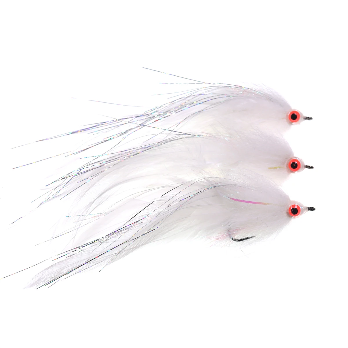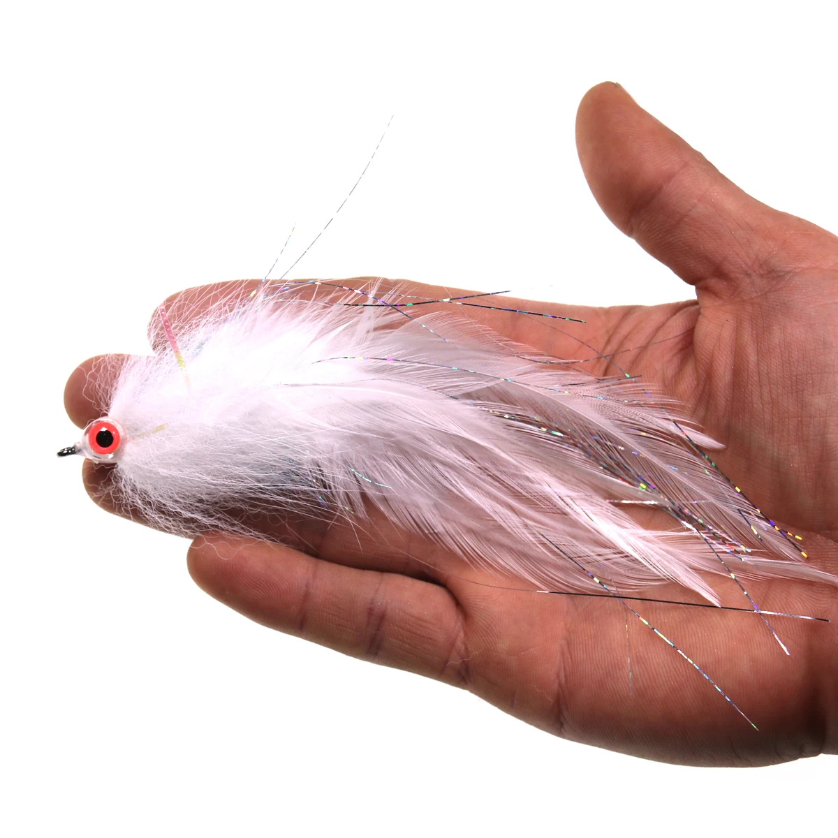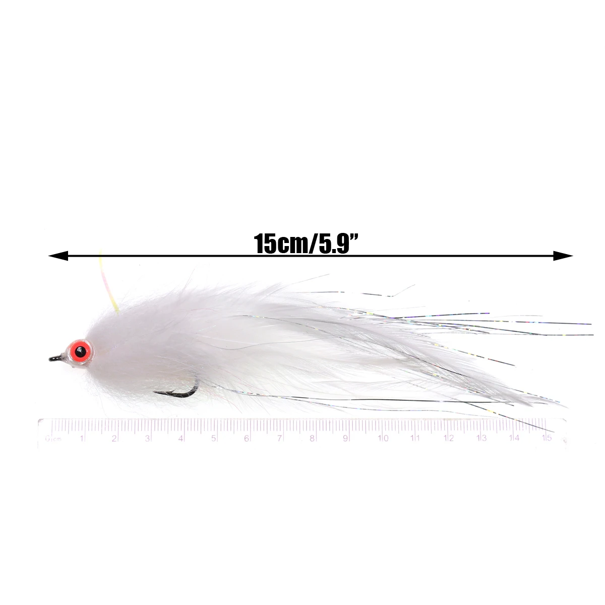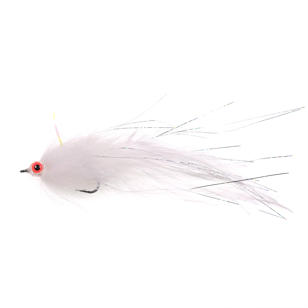 Wifreo#Señuelo blanco para moscas de peces, señuelo para moscas serpentinas colgantes, para lubina almizcle, cebo, imitador de peces, moscas de pesca de trucha, 2/0