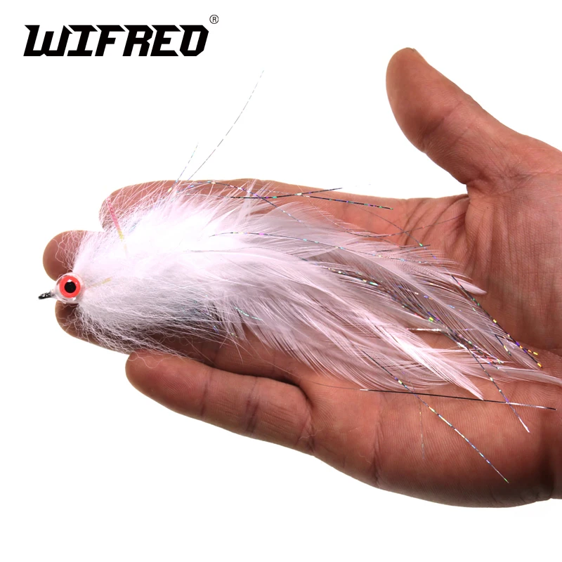 Wifreo#Señuelo blanco para moscas de peces, señuelo para moscas serpentinas colgantes, para lubina almizcle, cebo, imitador de peces, moscas de pesca de trucha, 2/0
