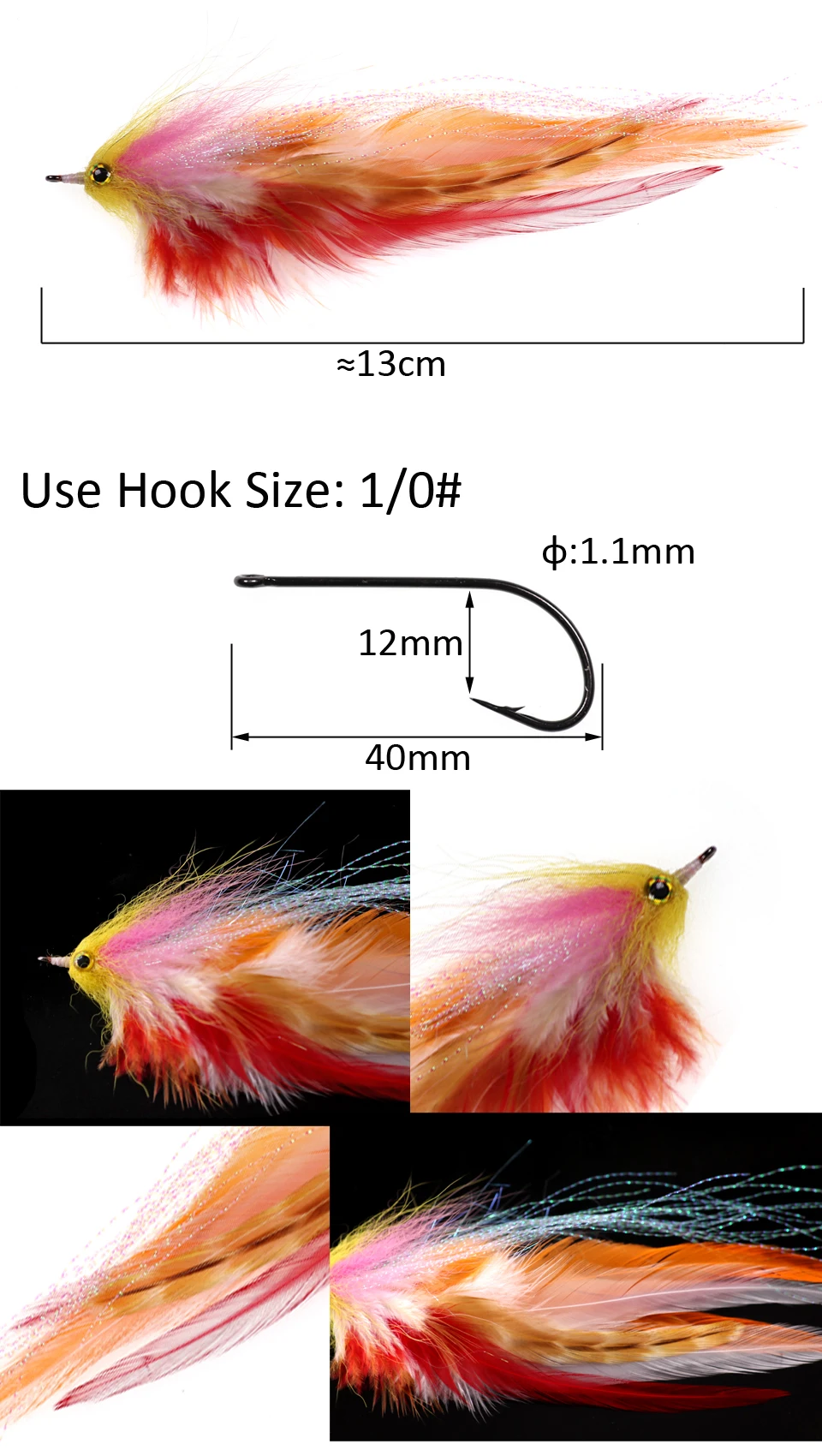 WIFREO 1 pieza 2/0 pluma Streamer pesca mosca trucha salmón Steelhead Pike gran Streamer tubo moscas agua salada pesca señuelos cebos