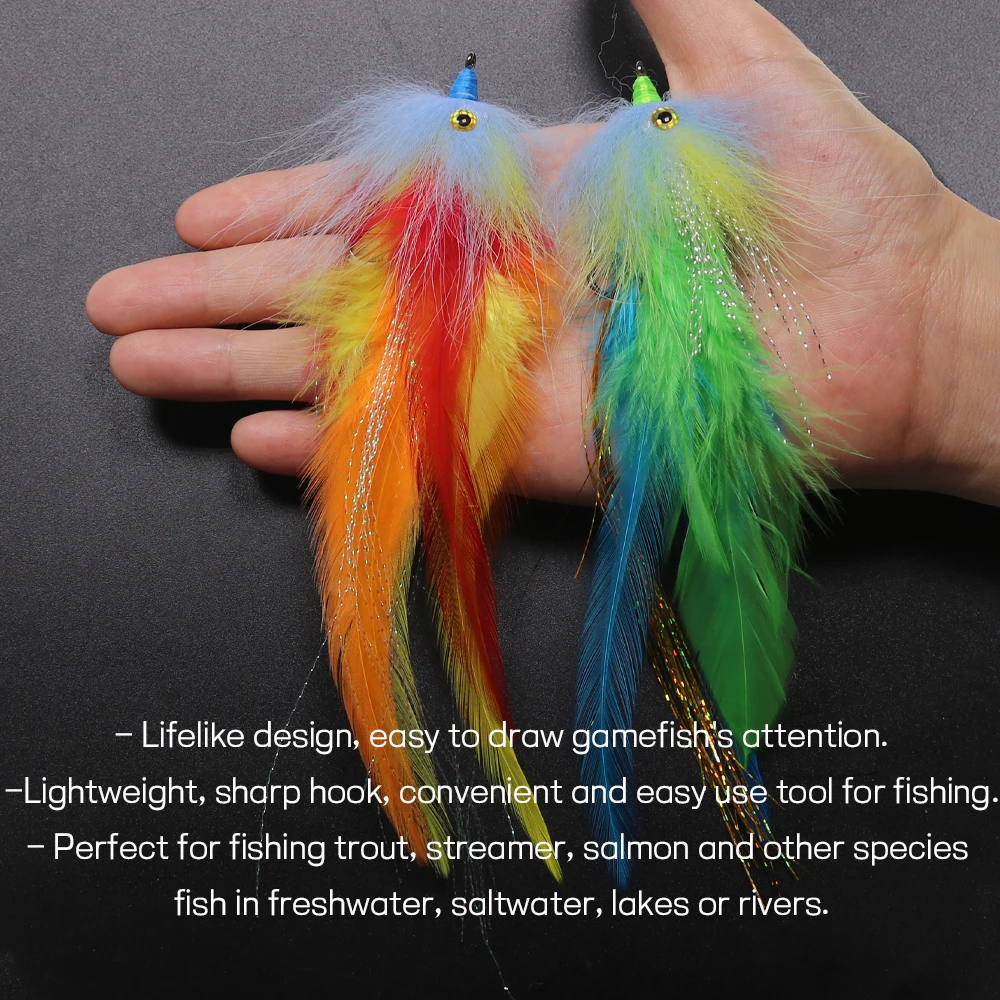 -Atar anzuelo de pesca de acero al carbono con pluma artificial, hermoso y natural. Colores brillantes para atraer la atención de los peces.
