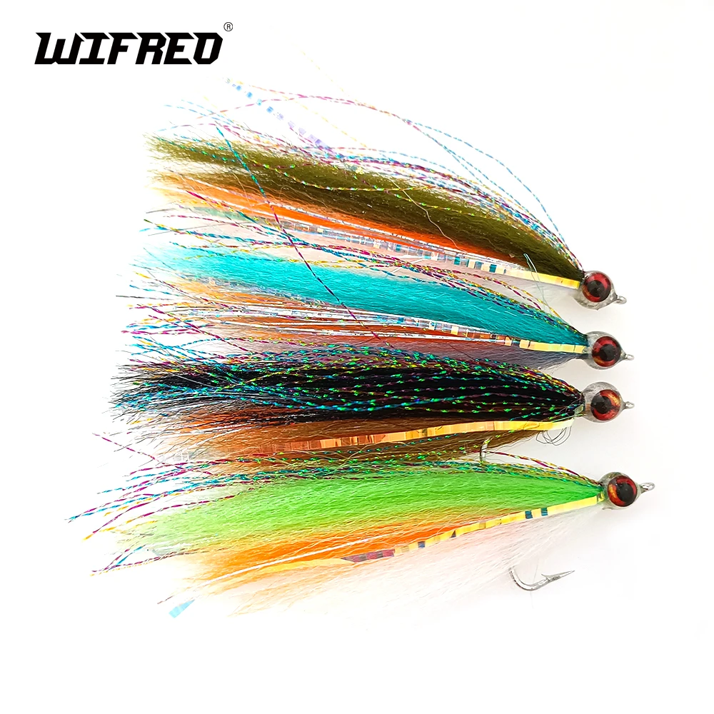 Wifreo 1 pieza 4 colores 4.1′′ pesca con mosca serpentina señuelo Flash oropel fibra sintética pececillo moscas lubina Lucio cebo de pesca de agua salada