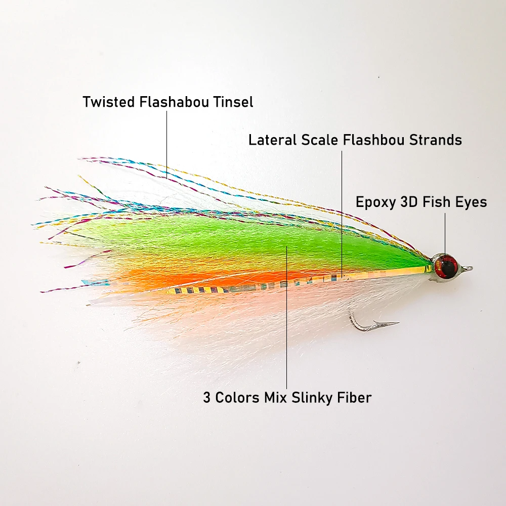 El ojo de pesca realista en 3D hace que las moscas sean más realistas y efectivas, perfectamente para conducir peces salvajes y seducir diferentes especies de peces.4 colores opcionales, adecuados para diferentes condiciones del agua.Los señuelos streamer meticulosamente atados a mano están hechos de fibra delgada, oropel de cristal y ganchos fuertes y afilados que ofrecen una penetración más fuerte y profunda.Ideal para pesca de lubina rayada, pez rojo, dorado, anzuelos, truchas, lucio y más.