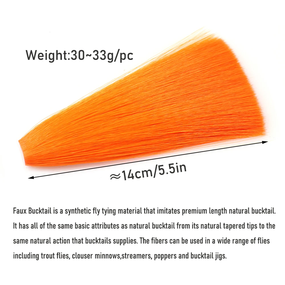 Faux Bucktail es un material sintético para atar moscas que imita el bucktail natural de longitud Premium. Tiene los mismos atributos básicos que el bucktail natural, desde sus puntas cónicas naturales hasta la misma acción natural que suministra bucktails. Puedes atar todo, desde Clouser Minnows hasta moscas Muskie grandes con Faux Bucktail. Faux Bucktail se puede usar junto con otros materiales sintéticos para atar moscas o usarlo con bucktail natural. Aproveche la longitud de fibra más larga y consistente de Faux Bucktail usándola con una cola de hebilla natural más corta cuando necesite atar algunas moscas realmente grandes como moscas Muskie grandes.