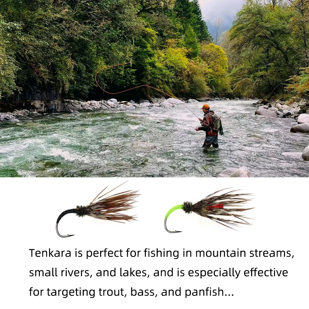 Wifreo 10PC#12 anzuelos para pesca con mosca Tenkara, moscas, trucha, lubina, panfish, señuelo, arroyos de montaña, pequeños ríos, lagos, cebo de pesca