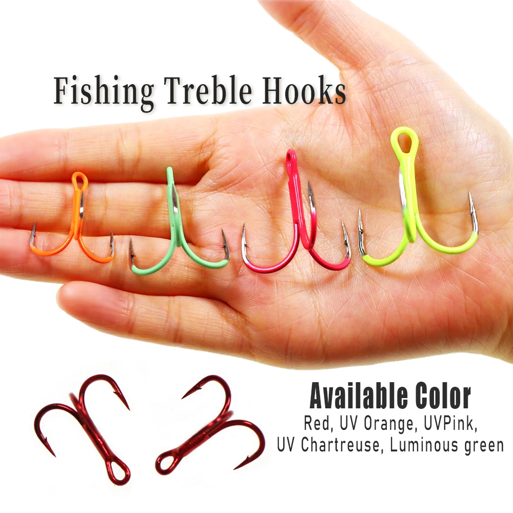 Uso: Gancho de repuesto. Anzuelos triples de pesca confiables para reemplazar los señuelos viejos con una combinación perfecta en tamaño y fuerza, ahorrando dinero al comprar otros nuevos.