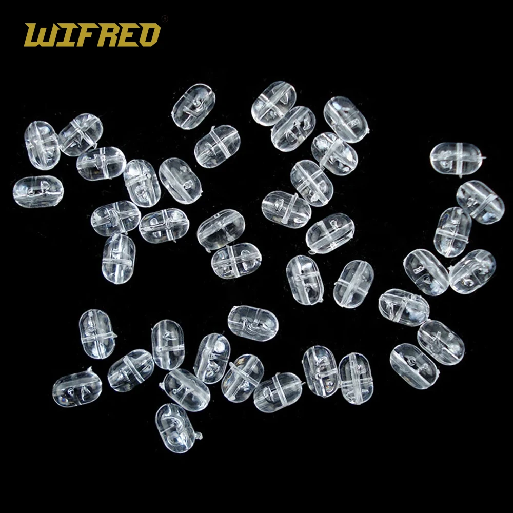 Wifreo 100/200PCS Fishing Beads Transparent Clear Oval Double Cross Hole Beads Sabiki Rig 3 Way Connector Fishing Accessories
