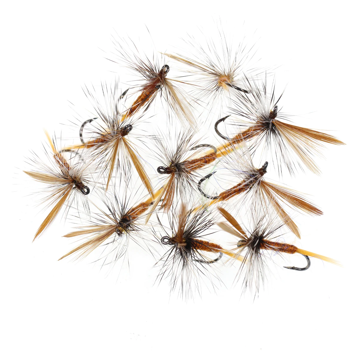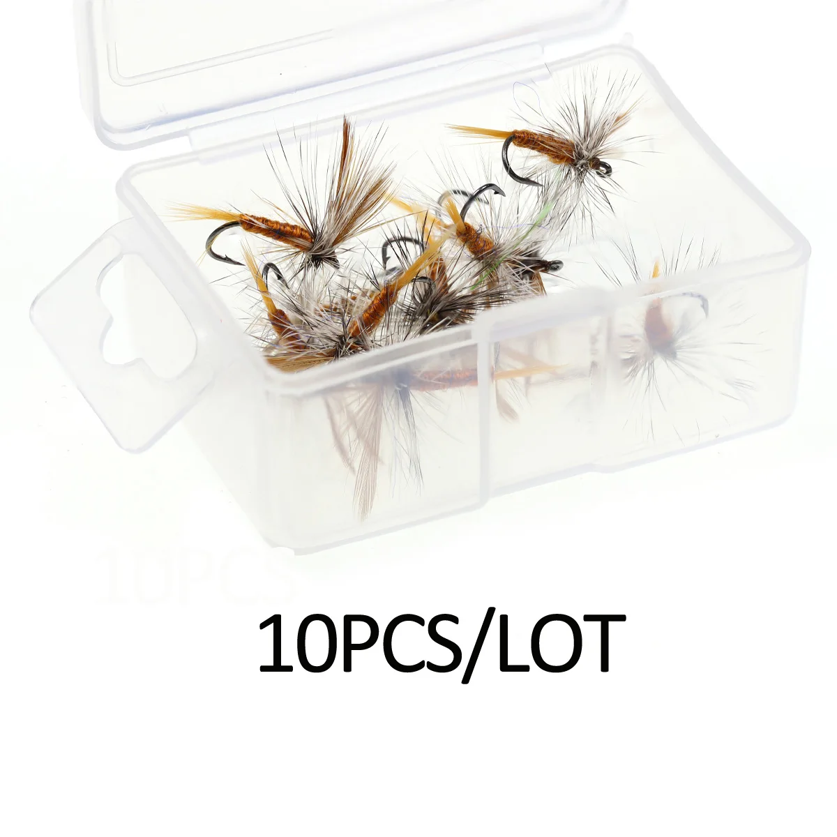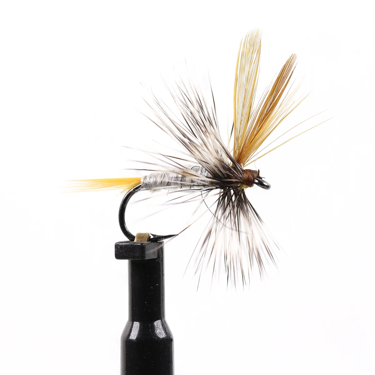 Wifreo 10PCS#10#12#14#16 marrón gris amarillo cuerpo Adams pesca de trucha con mosca moscas secas cebo de pesca con mosca Caddis Midge