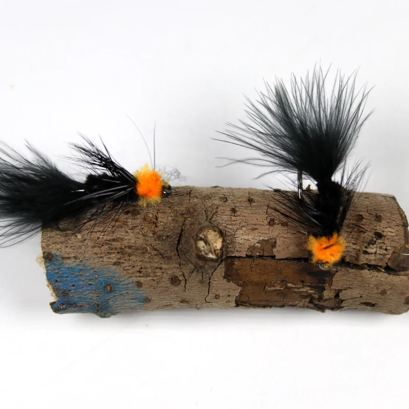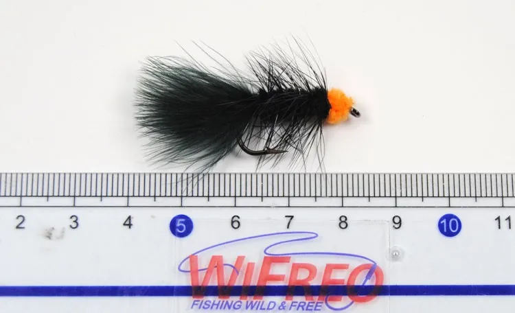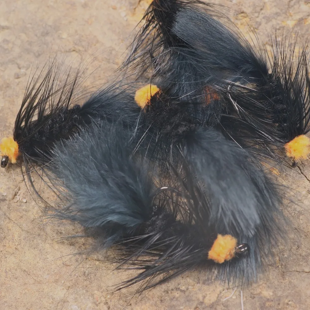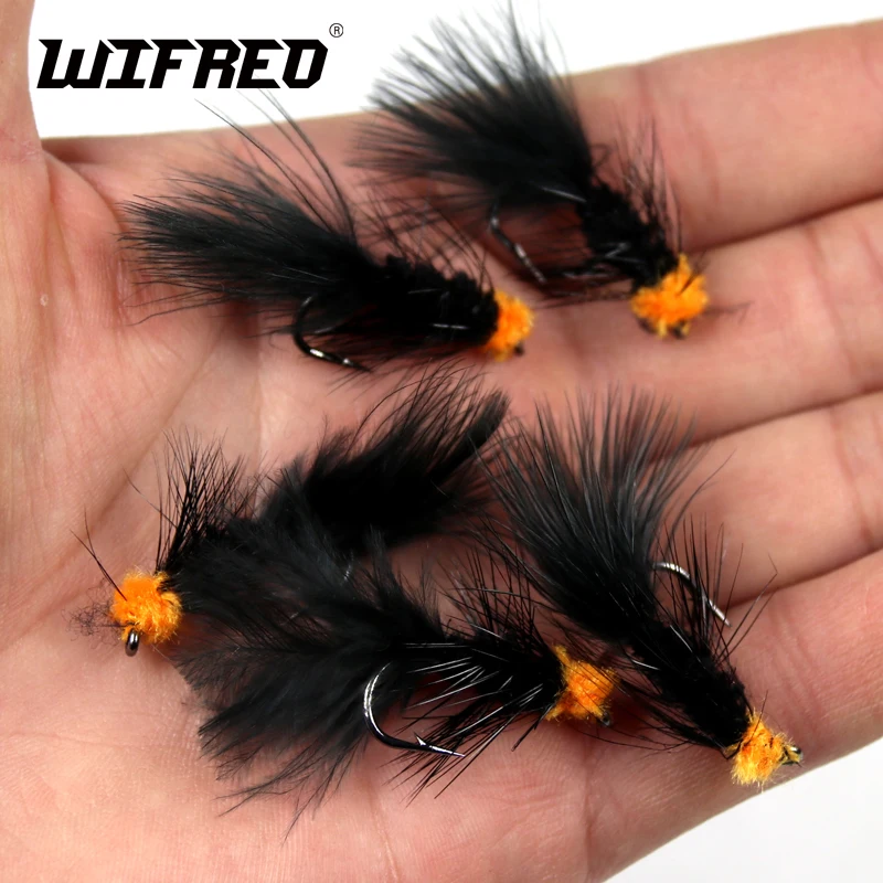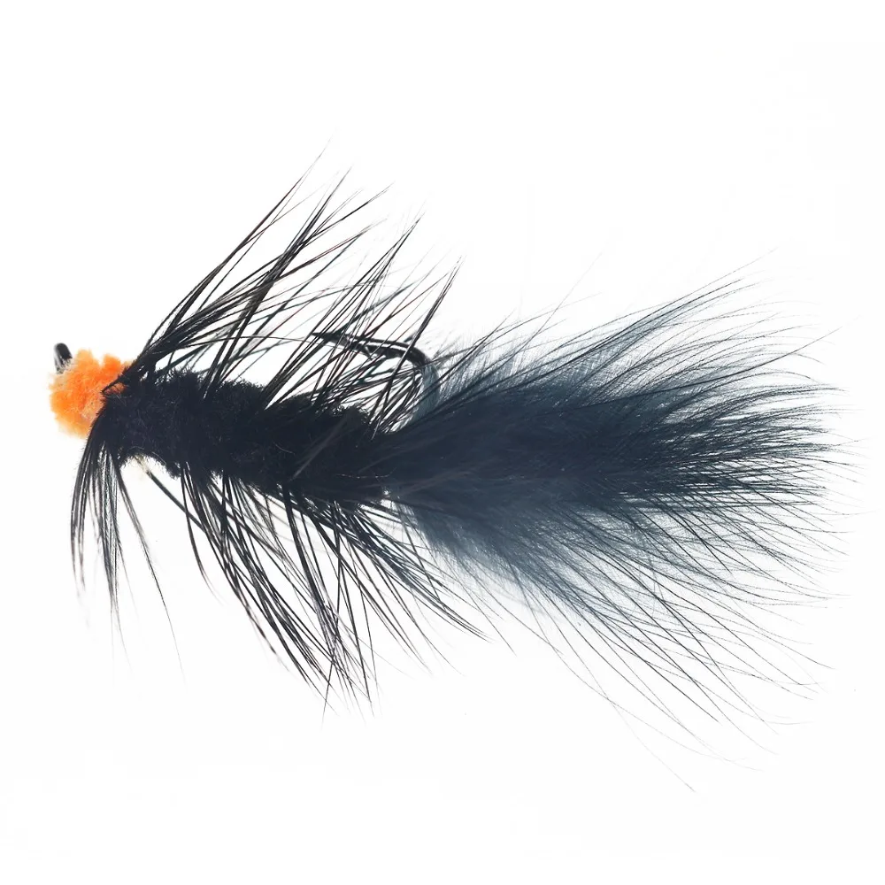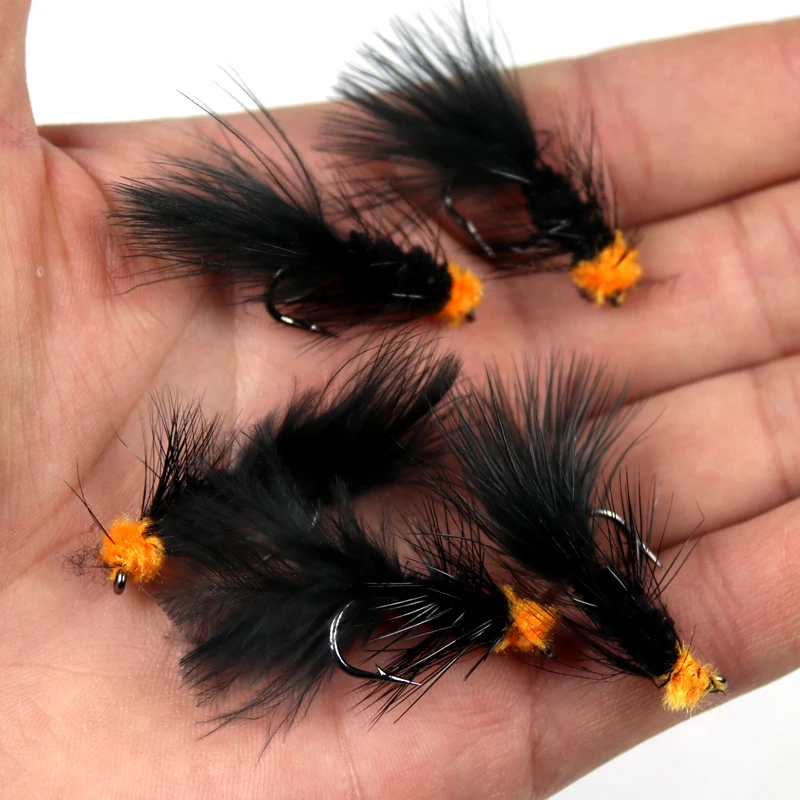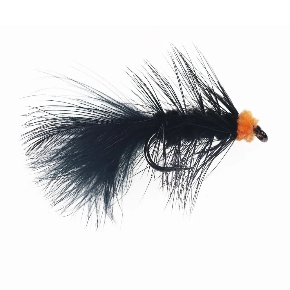 Wifreo 10PCS#6 pesca con mosca cebo para insectos huevo naranja chupador lechuga lanosa serpentina mosca Ninfa Artificial Marú negro Flashabou