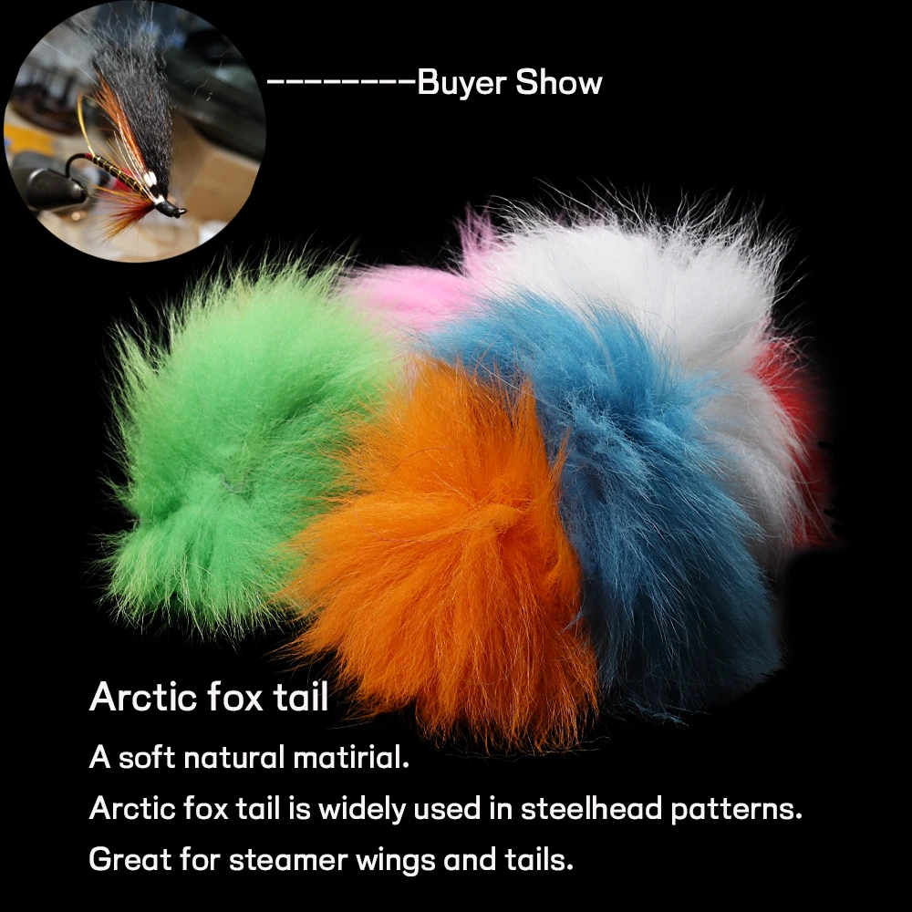 WIFREO 12PC Dyed Fly Tying Arctic Fox Tail Hair for Salmon Steelhead Flies Tube Fly Jig Streamer Hairwing Fly Tying Fur Material