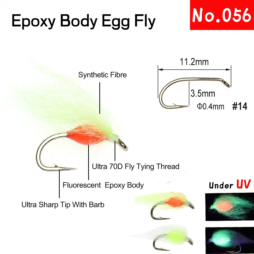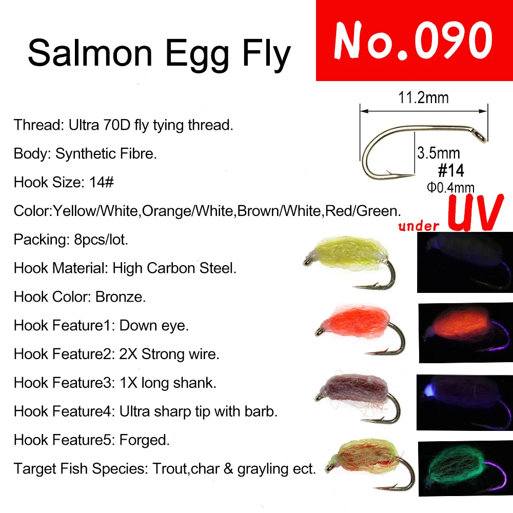 WIFREO 12pcs Brass Beadhead Trout Egg Fly Crystal glo Ball Bug Fishing Egg Flies Salmon Trout Fly Lures Fishing Lures Tackle