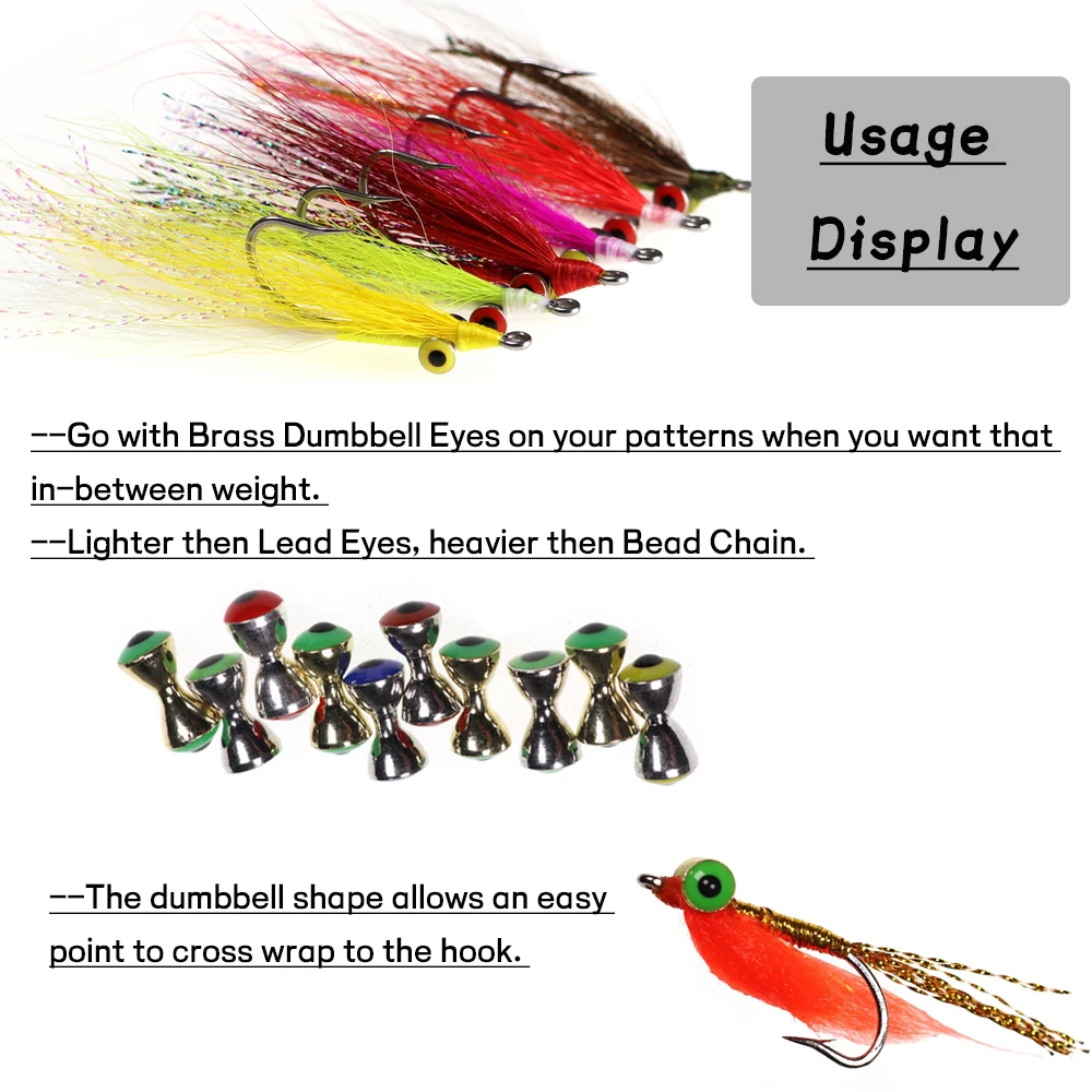WIFREO 12 Uds. Mancuerna de latón realista 3D ojos de pez atado de mosca reloj de arena ojos hallazgos cuentas cuentas para atado de moscas Material para atado de moscas