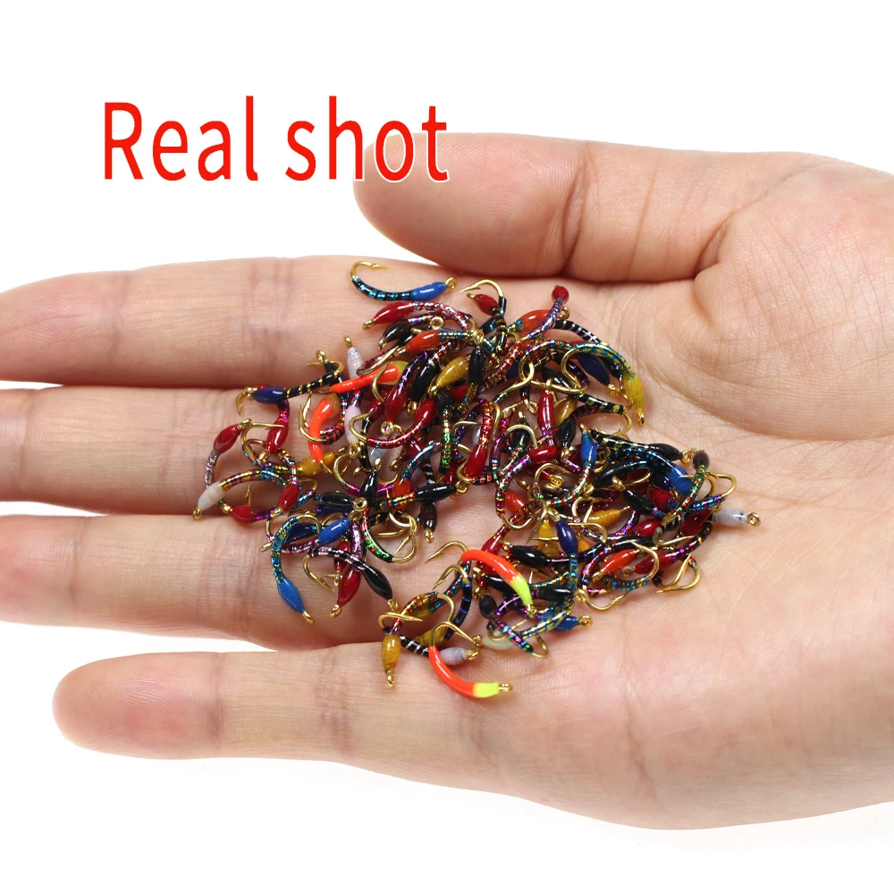 Wifreo 12pcs Expoxy Nymph Flies Midge Hegene Buzzers Trout Fishing Bait Artificial Lures Size 14