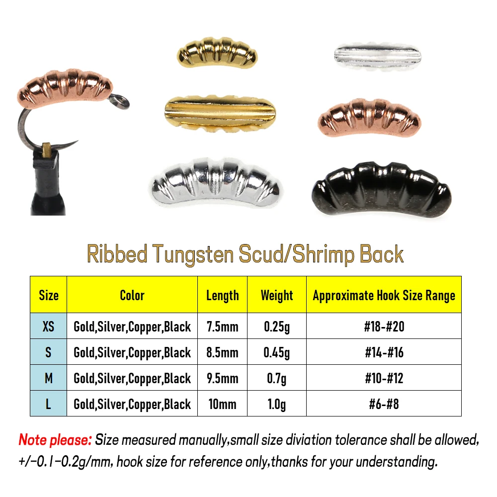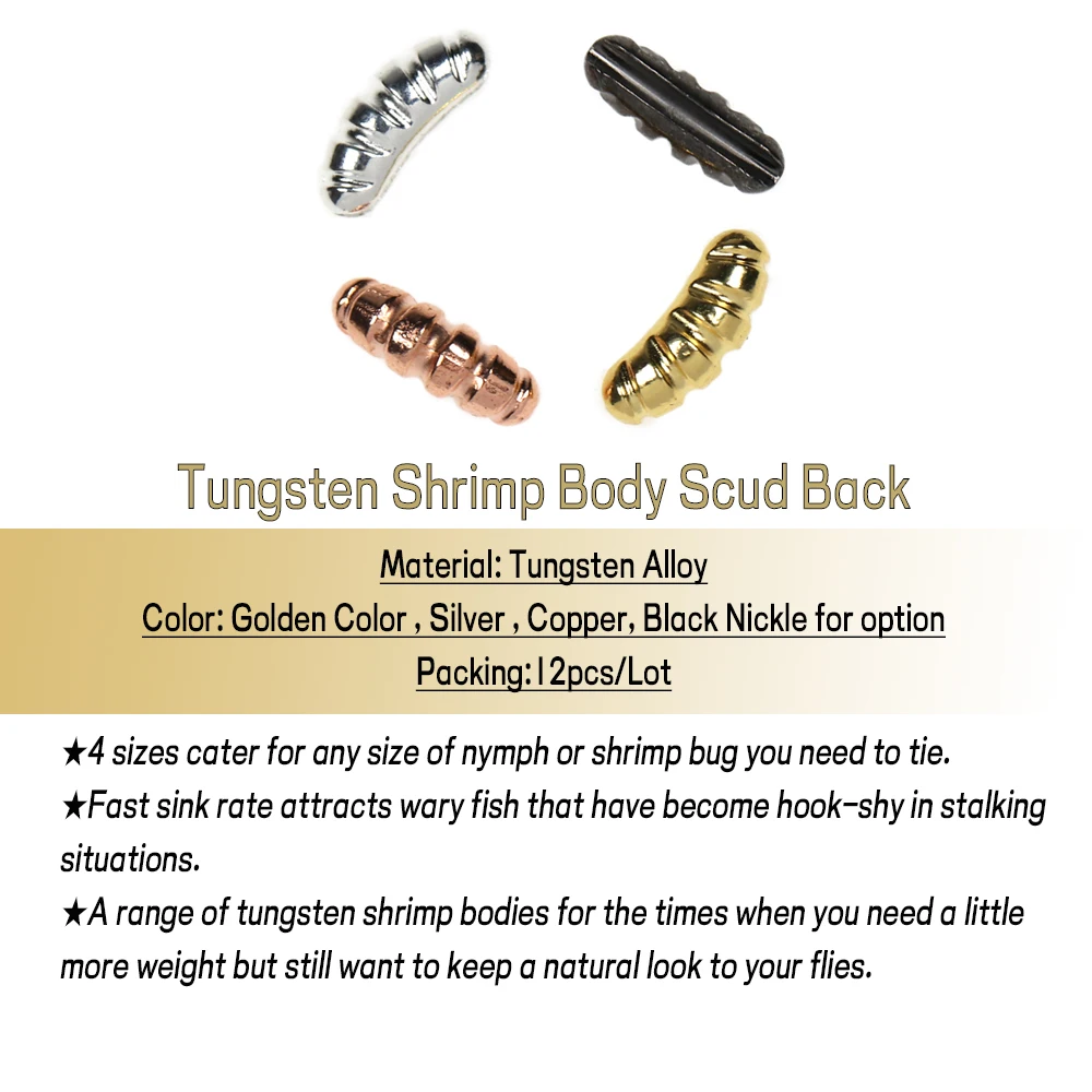 WIFREO, 12 Uds., plantilla de cuerpo de camarón de tungsteno pesado, Scud carcasa trasera, cuerpo de Camarón, accesorios de peso de Ninfa, Material para atar moscas