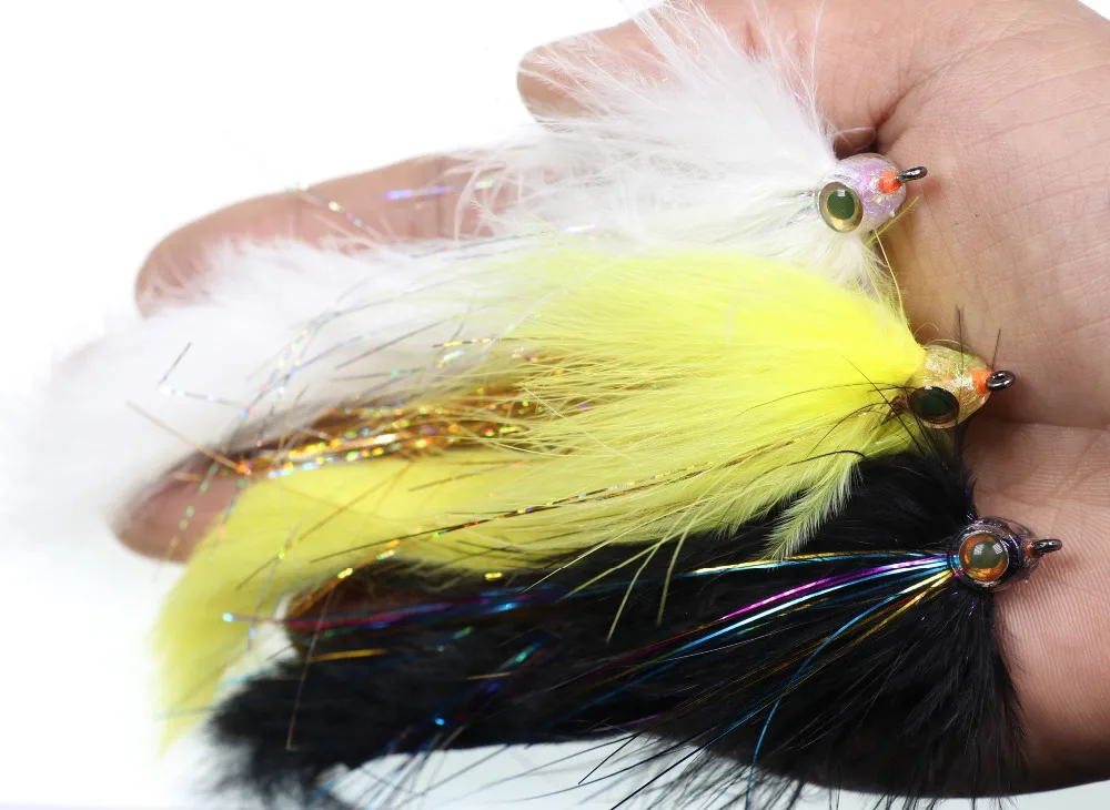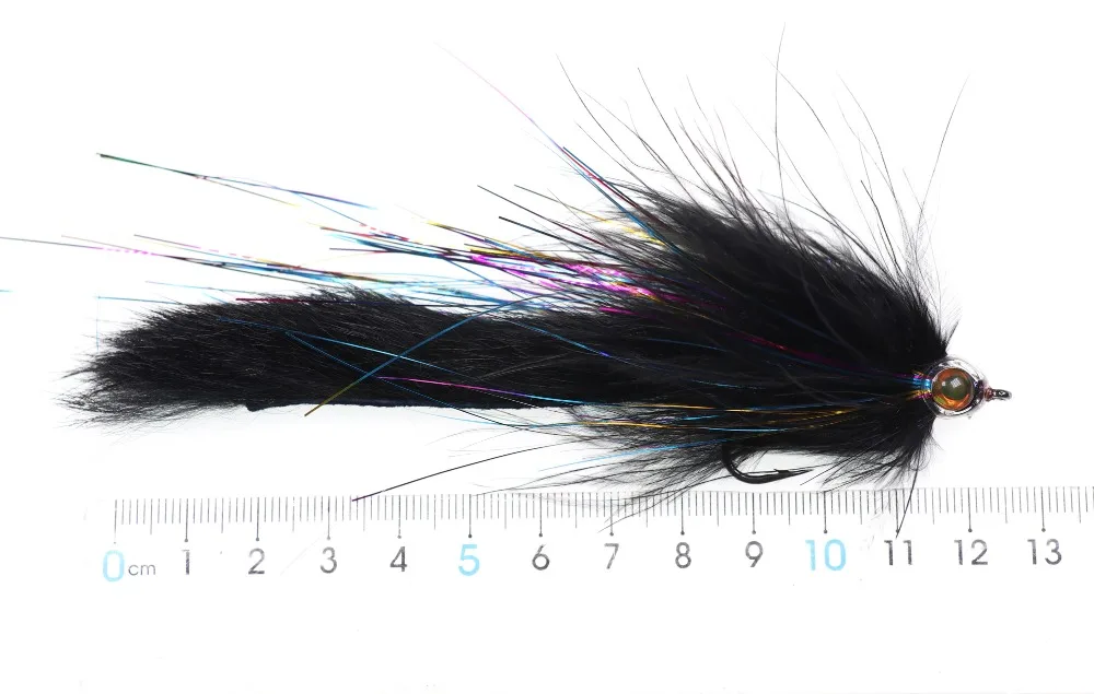 Wifreo 2/0 cola de conejito Lucio almizco stehead mosca con cabeza de epoxi arroyos de mosca de pesca en agua salada negro blanco amarillo