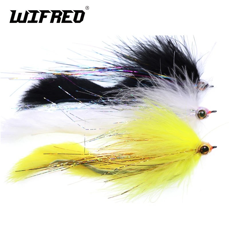Wifreo 2/0 cola de conejito Lucio almizco stehead mosca con cabeza de epoxi arroyos de mosca de pesca en agua salada negro blanco amarillo