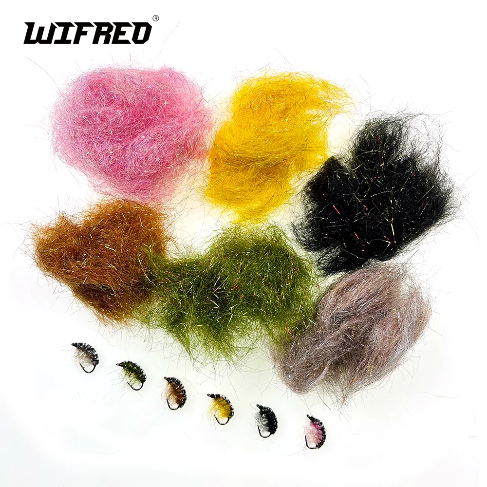 WIFREO 2 g/bolsa 6 colores ninfa checa doblaje suaves finas fibras brillantes Material de atado para pesca con mosca Dub sintéticoScuds camarones