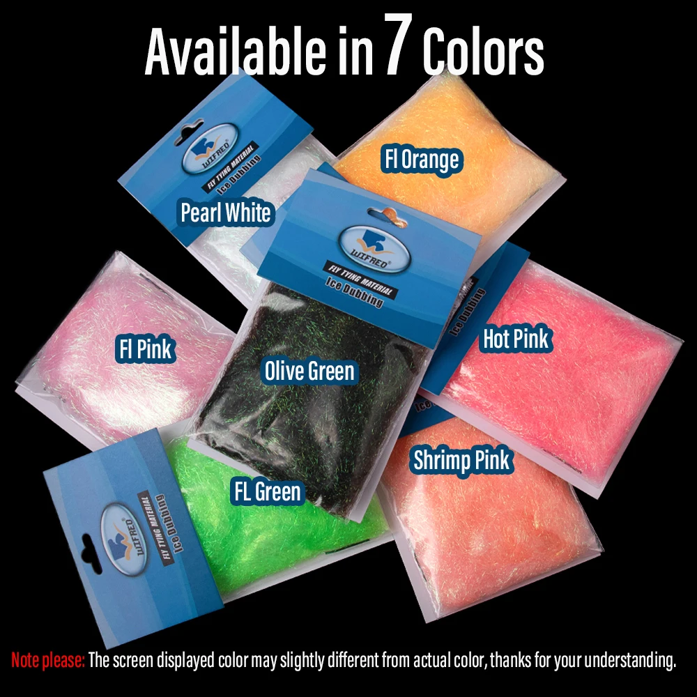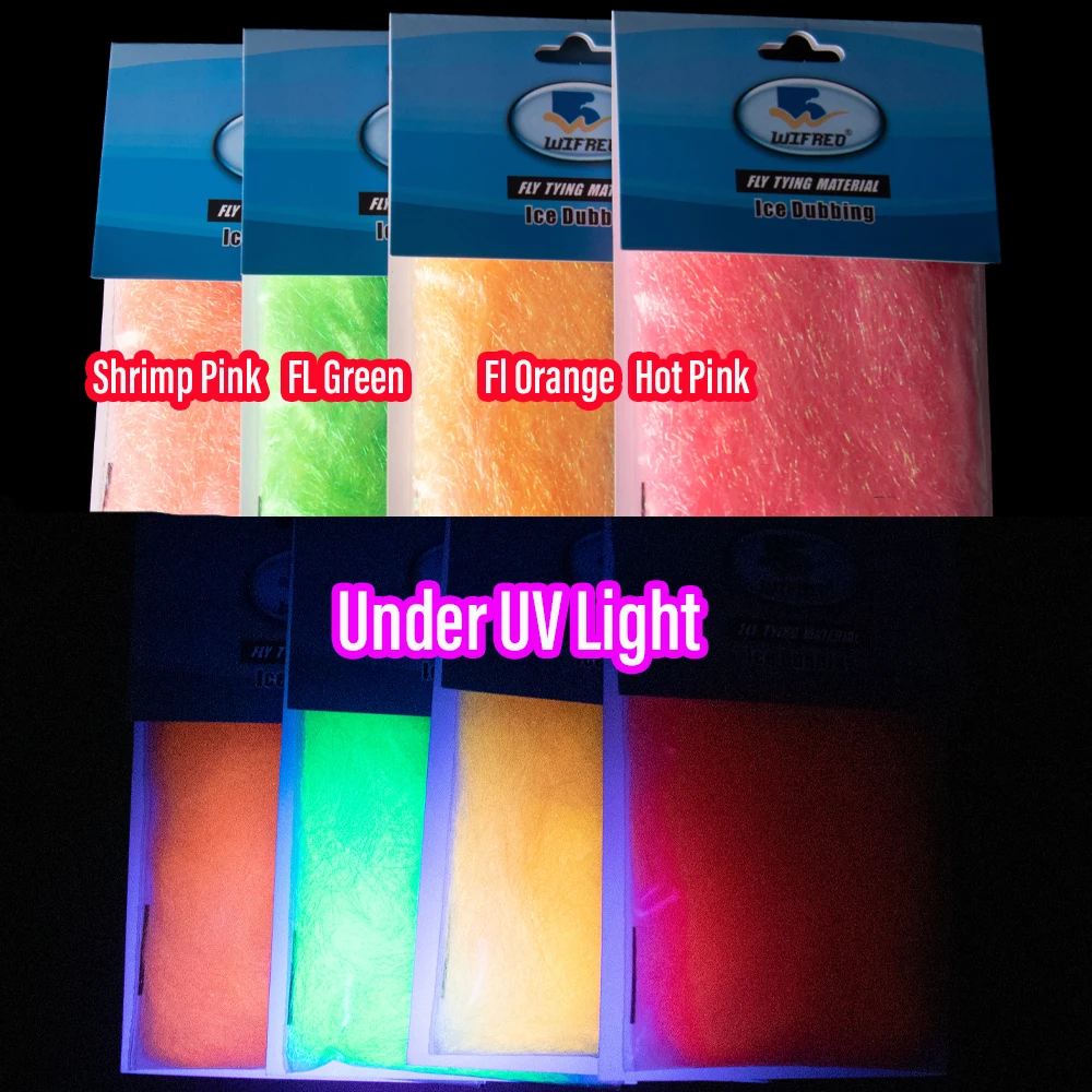 ●Ice dubbing will add flash and fish attracting character to any fly, the UV color dubbings increase the visibility of flies in deep waters, or in low light conditions.