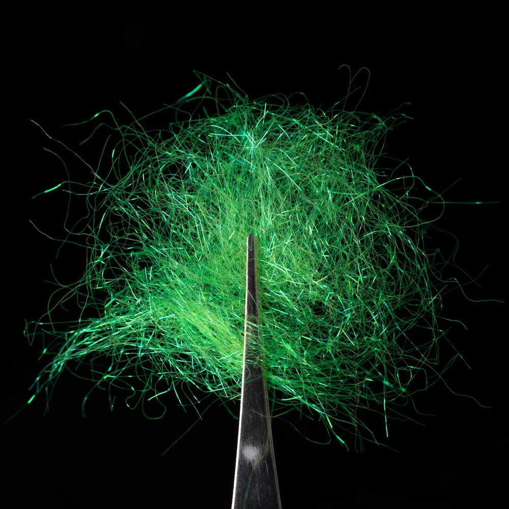 ●The sparkling, flashy synthetic fibers give this material a bit of translucent appearance and the right amount of shimmer so it can effectively mimic the exoskeletons of the subsurface fly bodies.