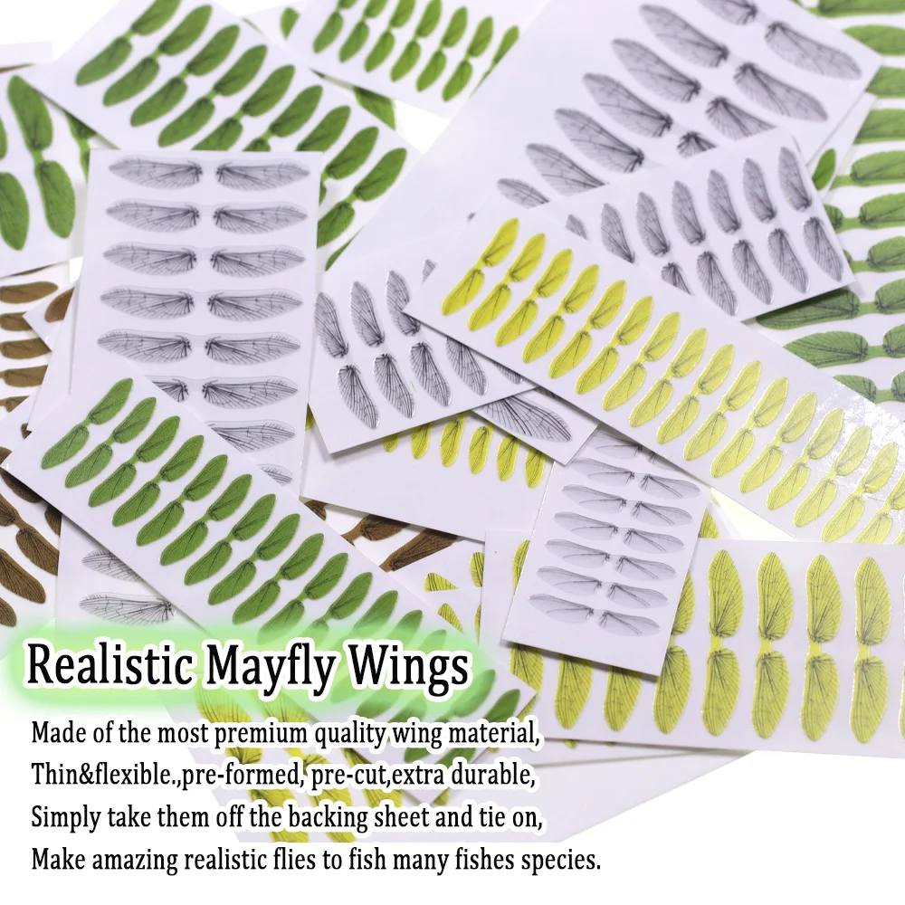 Wifreo 2 hojas de alas de insectos realistas, alas para atar moscas precortadas, alas Mayfly, materiales para atar moscas para señuelo de pesca de trucha, mosca seca