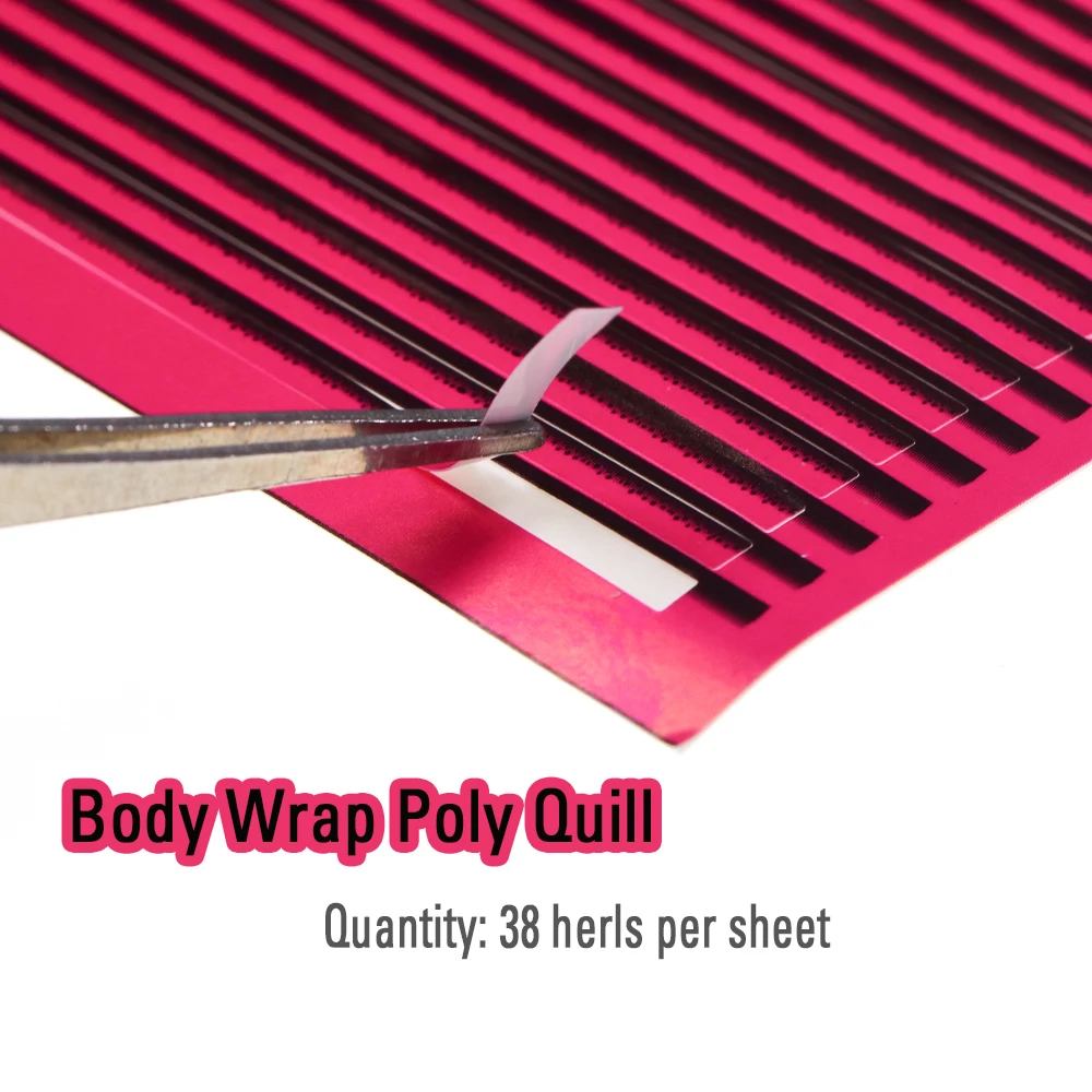 Aplicación: simplemente envuelva el cuerpo de la pluma sintética en su cuerpo de mosca y aplique una capa delgada de acabado transparente UV o Bug-Bond. Puedes atar fácilmente la talla 16 a la talla 10 moscas con este material.