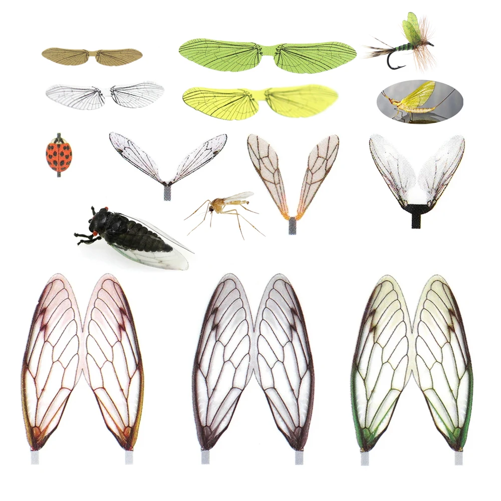Wifreo 2 Packs Realistic Fly Wing Pre-cut Fly Tying Insect Wings Synthetic Stonefly Mayfly Bottle fly Trout Lure Tying Materials