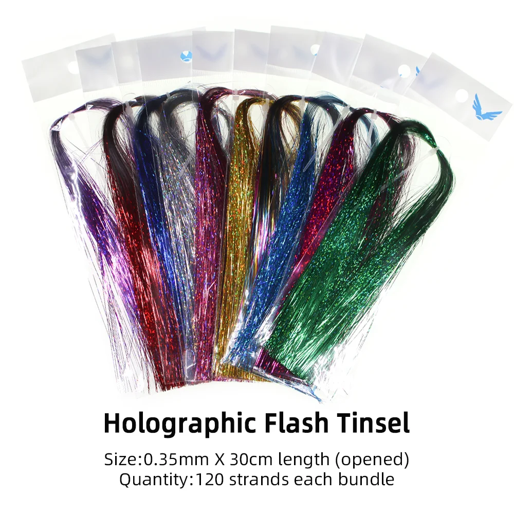 Wifreo 2 paquetes Flashabou holográfico oropel plano flash mosca pesca atado cuerda plantilla gancho señuelo Material para hacer oro plata rojo