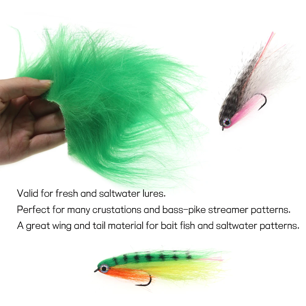 WIFREO, 2 piezas, atado de moscas, pelo largo peludo artesanal, fibra sintética Artificial, materiales de cuerpo y cola de mosca para Lucio, lubina, Mosca de agua salada