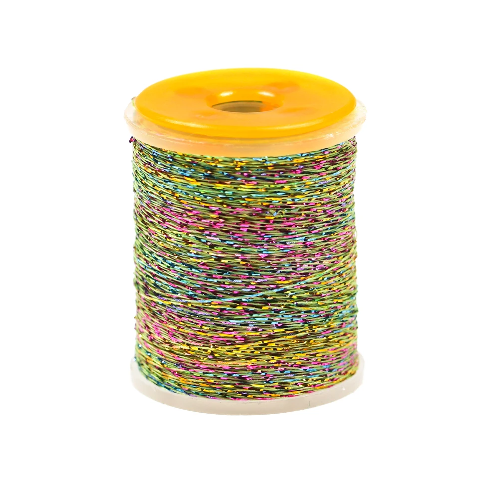 Micro Glint nymph Tinsel es un fino hilo iridiscente y metálico de múltiples hilos con un acabado brillante único.Se puede utilizar para atar zumbadores completos o acanalados pequeños ninfas y moscas secas o como Shucks, ninfas de perdigones.Micro Glint Nymph, Tinsel también se puede utilizar como hilo de atado tradicional.