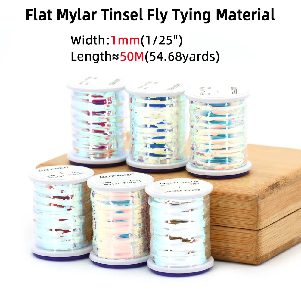 Wifreo, 2 uds., 1mm, oropel plano de Mylar, oropel Flash, Material para atar moscas, ninfa seca y húmeda, serpentina de agua salada, Señuelos de pesca de trucha con mosca