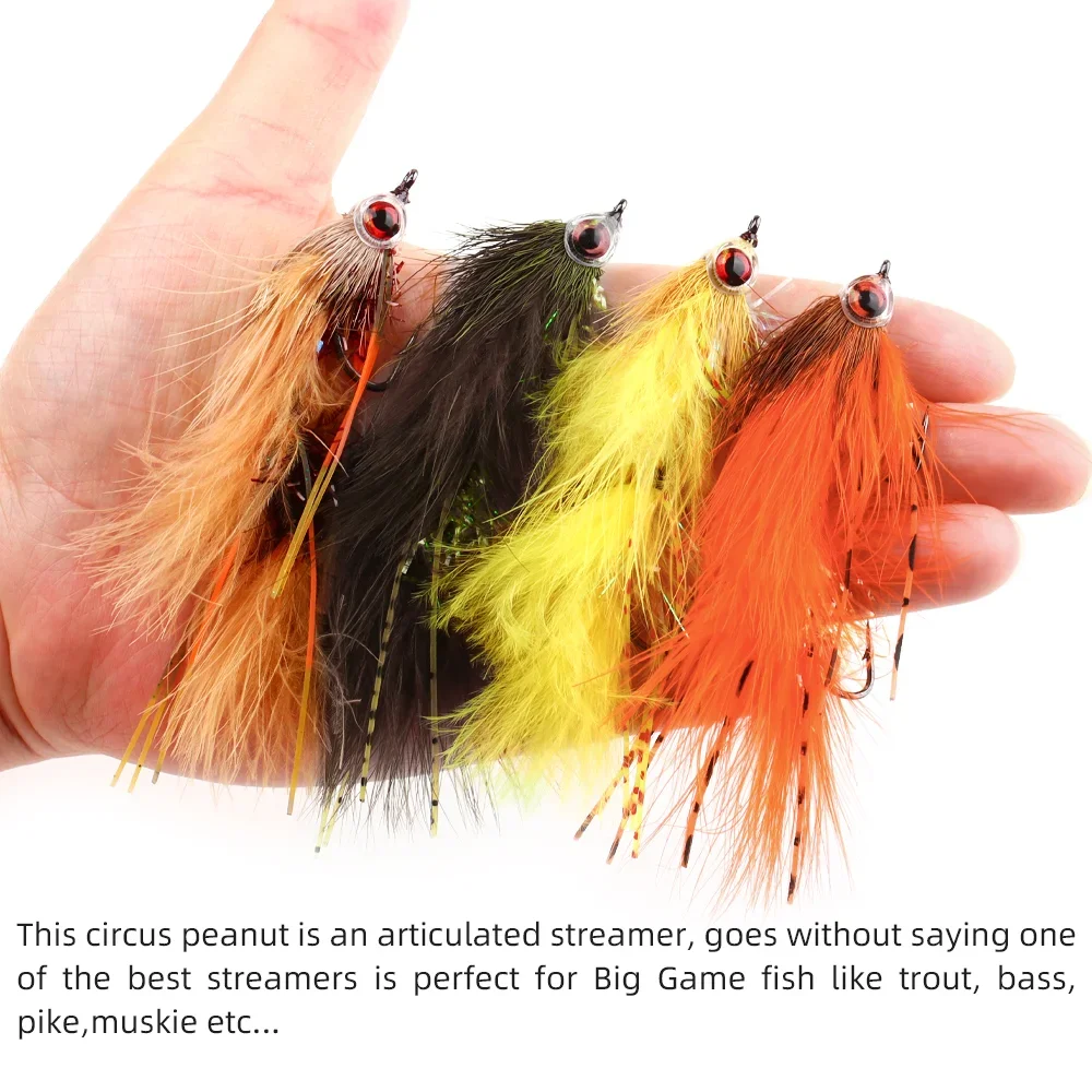 Wifreo 2 uds/4 Uds circo maní articulado Streamer 3D ojo de pez ciervo pelo Stinger moscas trucha lubina Lucio muskie Señuelos de pesca