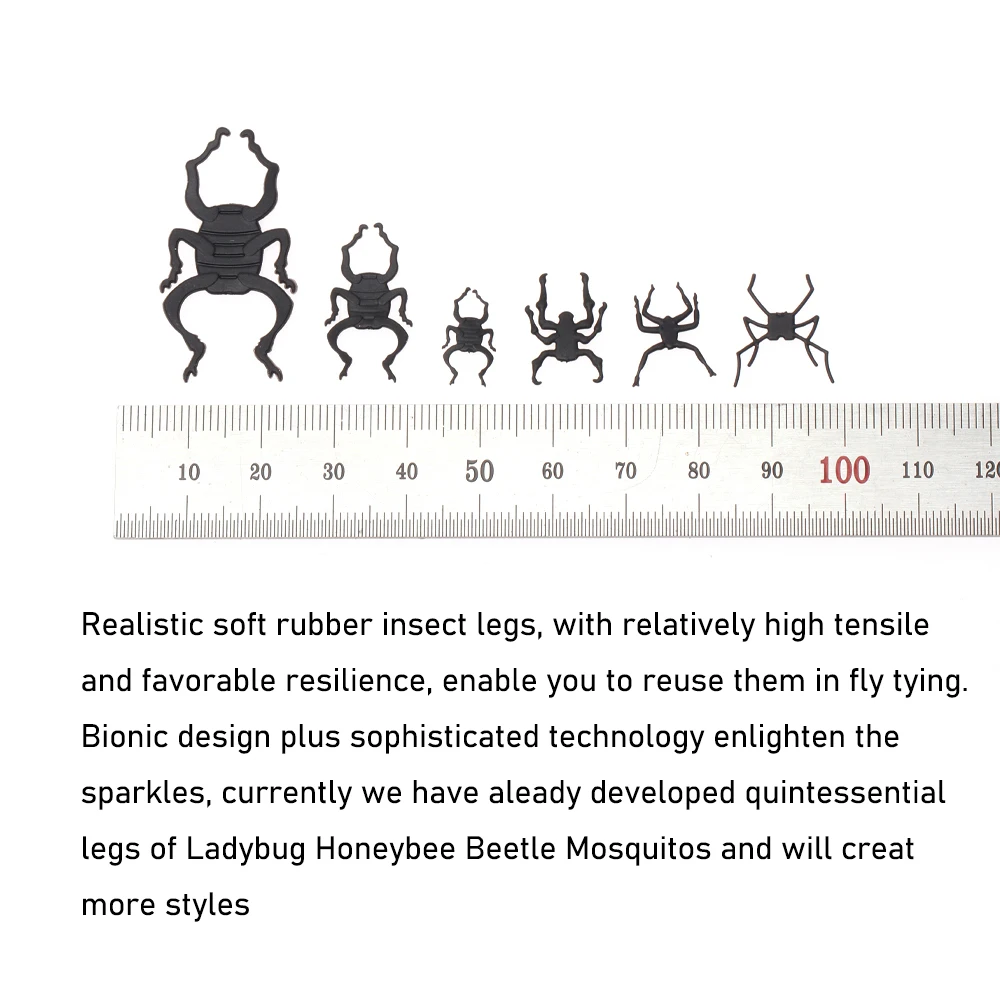 Las patas de insectos de goma suave realistas, con una resistencia relativamente alta y una resistencia favorable, le permiten reutilizarlas para atar moscas.El diseño biónico y la tecnología sofisticada iluminan los destellos, actualmente hemos desarrollado piernas por excelencia de Mosquitos Beetle Ladybug Honeybee y crearemos más estilos.Sólo tómalo, libera tu tiempo.