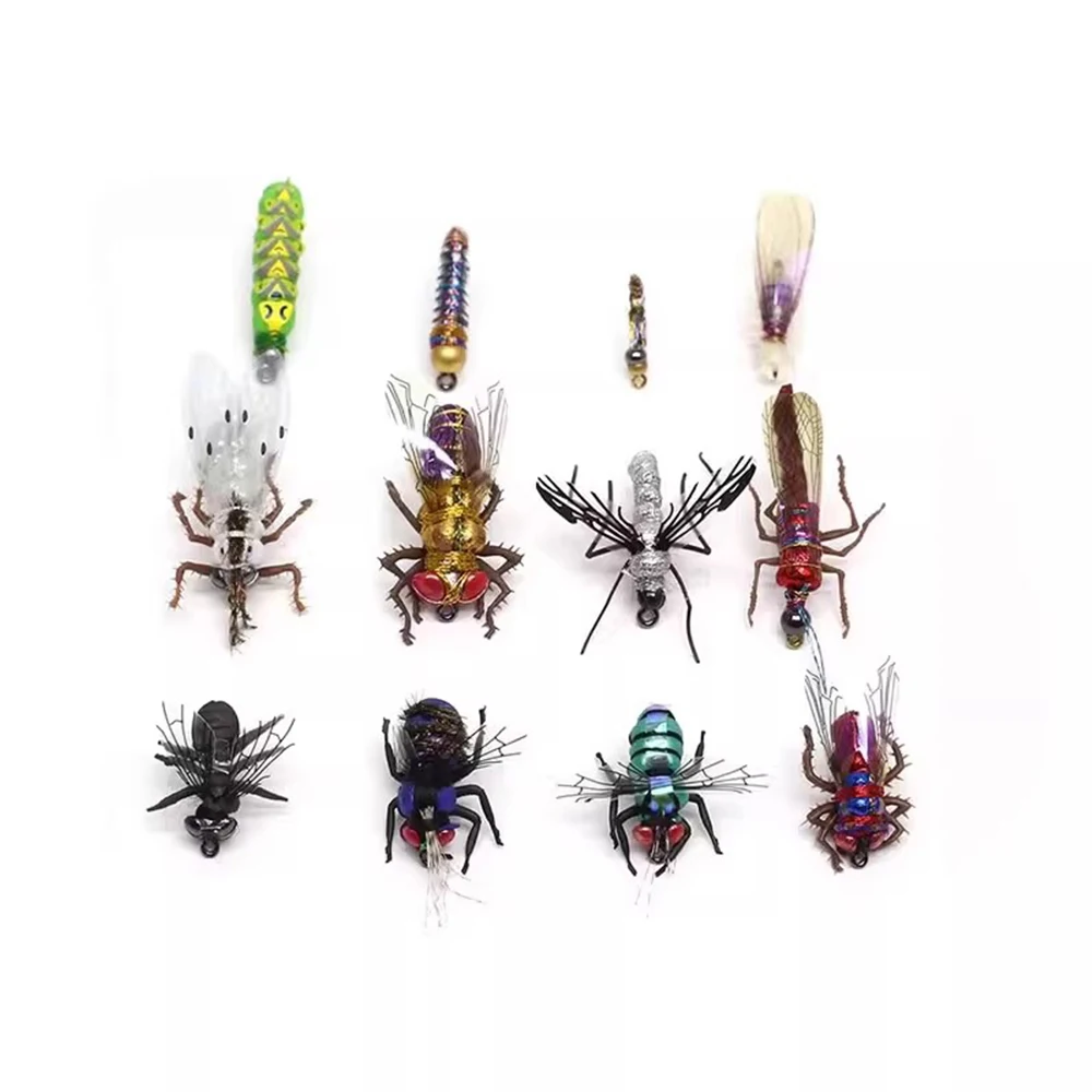 Wifreo 20/30 Uds pesca con mosca realista insecto patas de goma Artificial terrestre mariquita abeja escarabajo mosquitos atado Material
