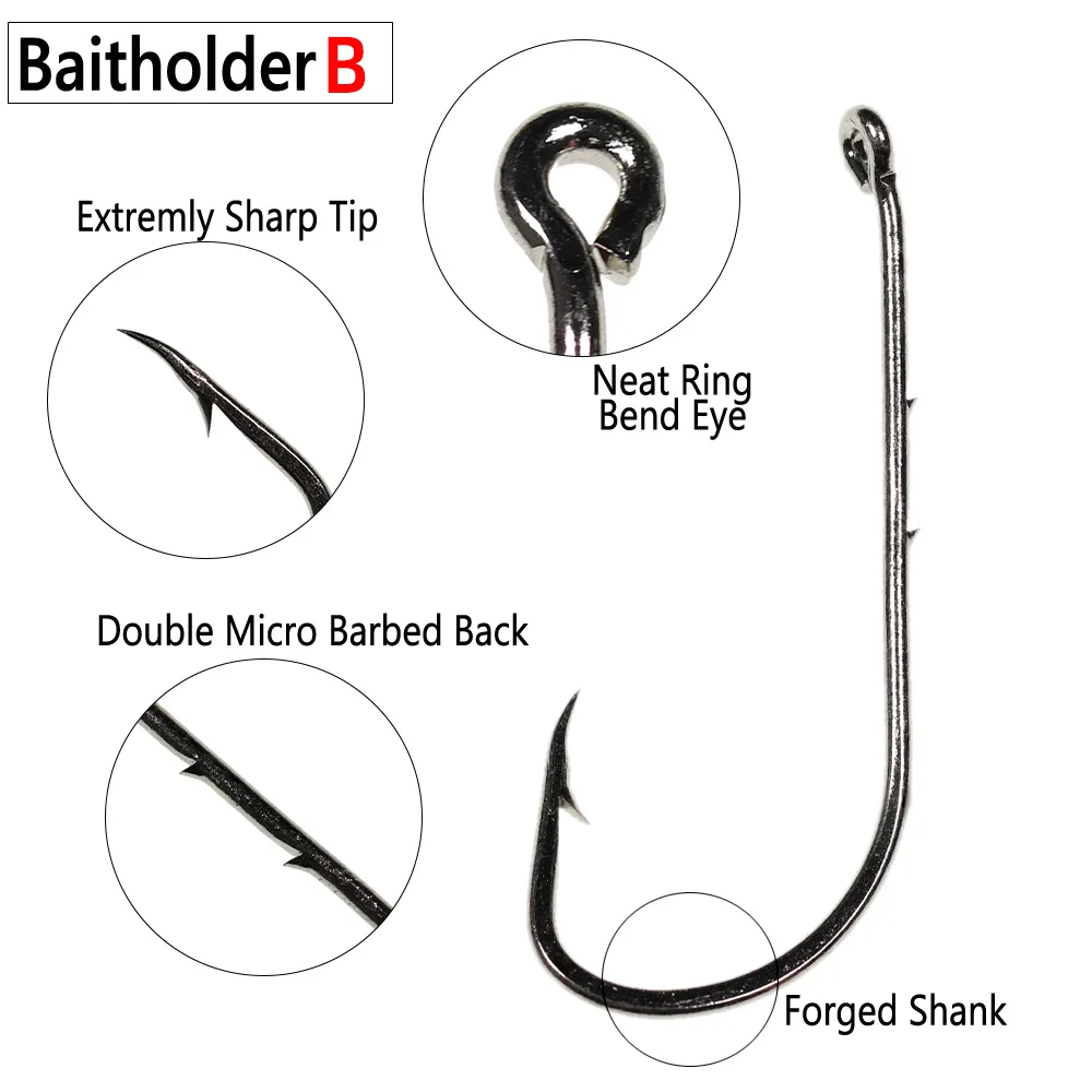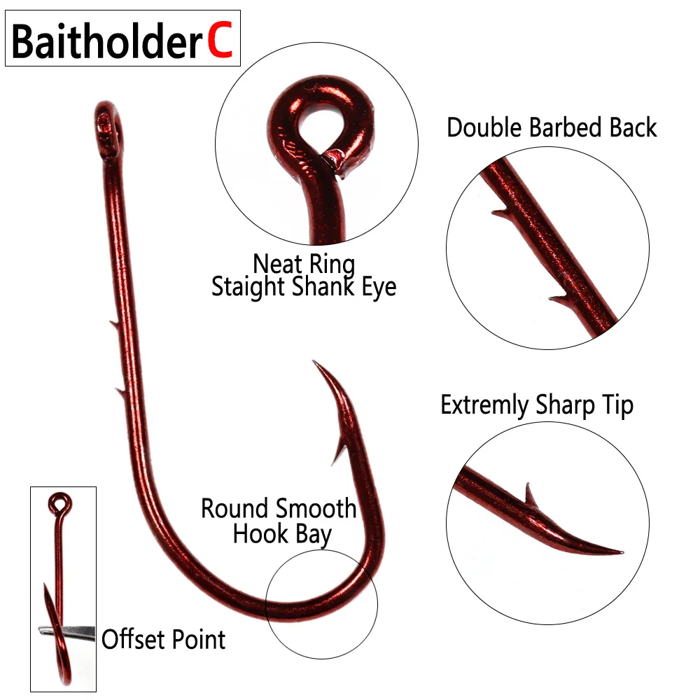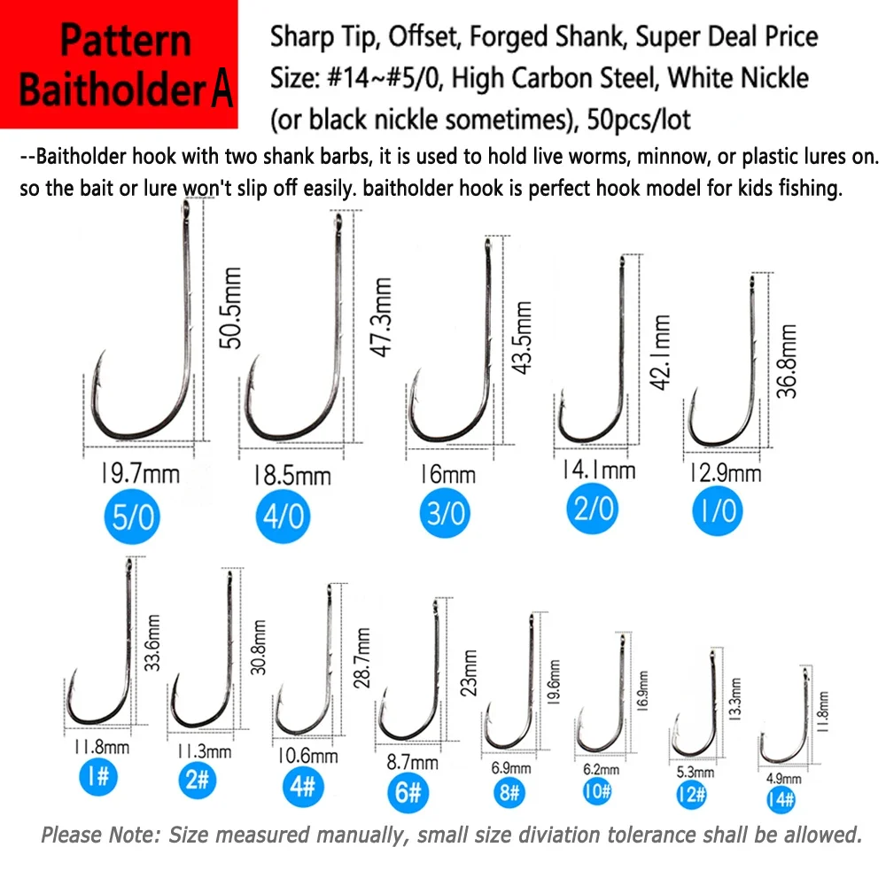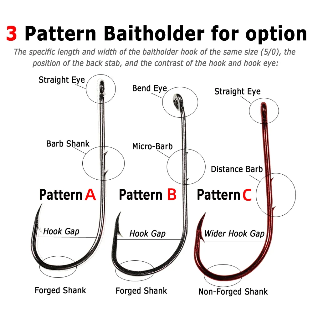 Wifreo 20/50 Uds anzuelo de púas Baitholdder anzuelos de pesca de acero al carbono duro gusano guapa brema soporte de cebo blanco níquel rojo 14#-7l0#