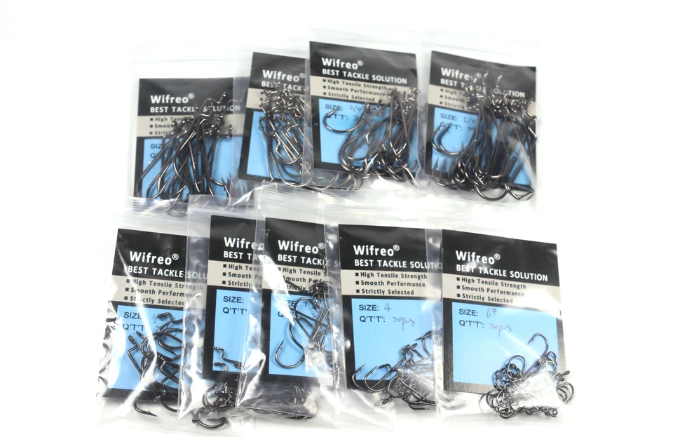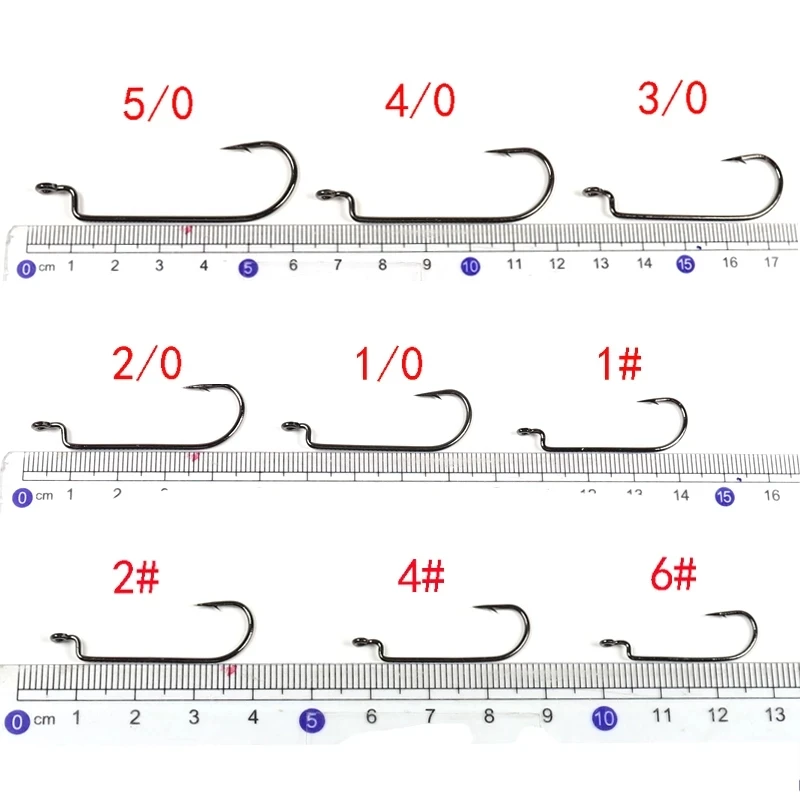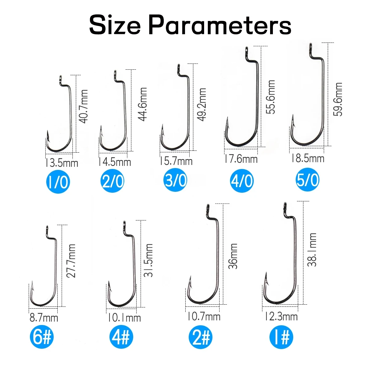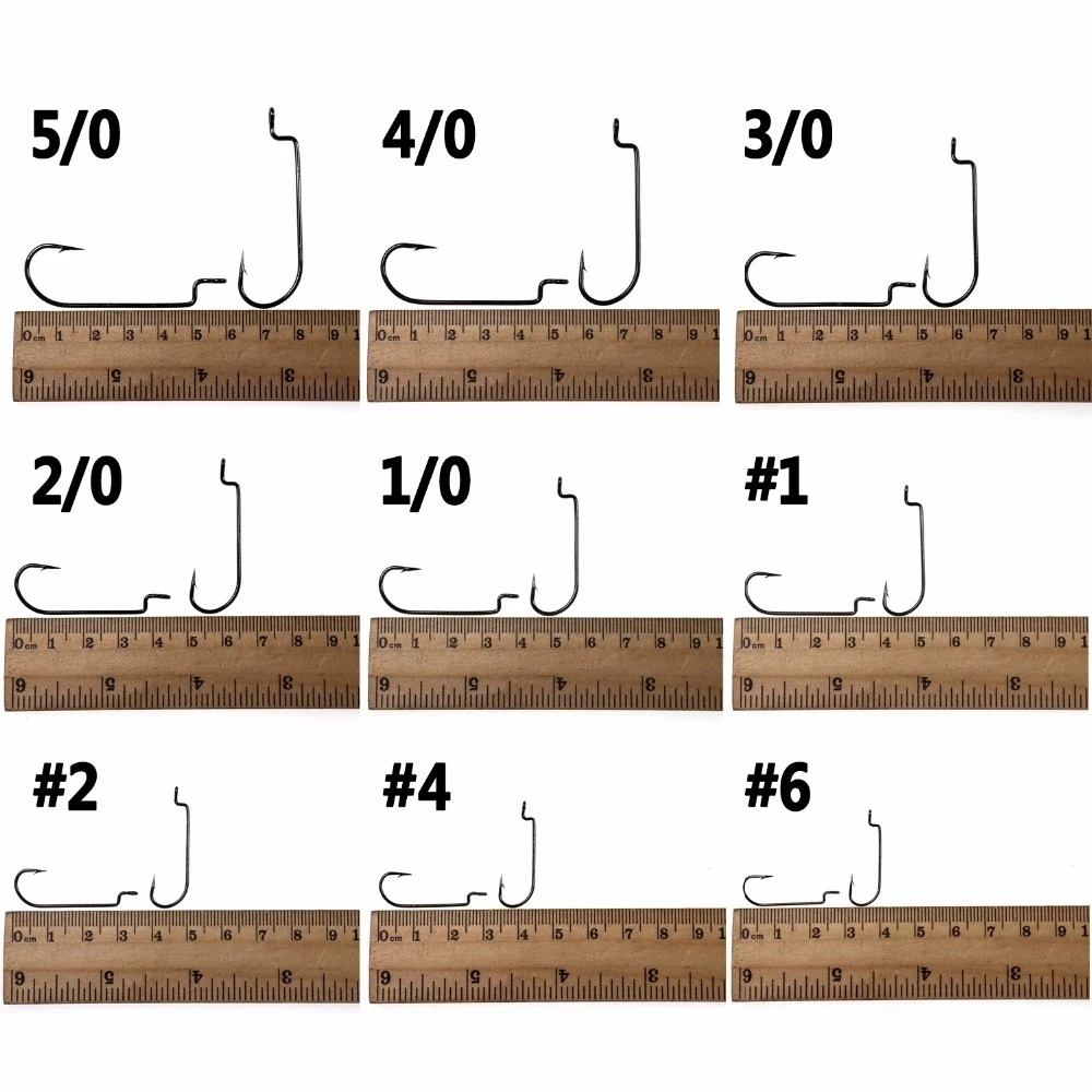 Wifreo 20PCS High Carbon Steel Soft Bait C Rig Hook Offset Shank Worm Hook Jig Rig Fishing Size 6 4 2 1 1/0 2/0 3/0 4/0
